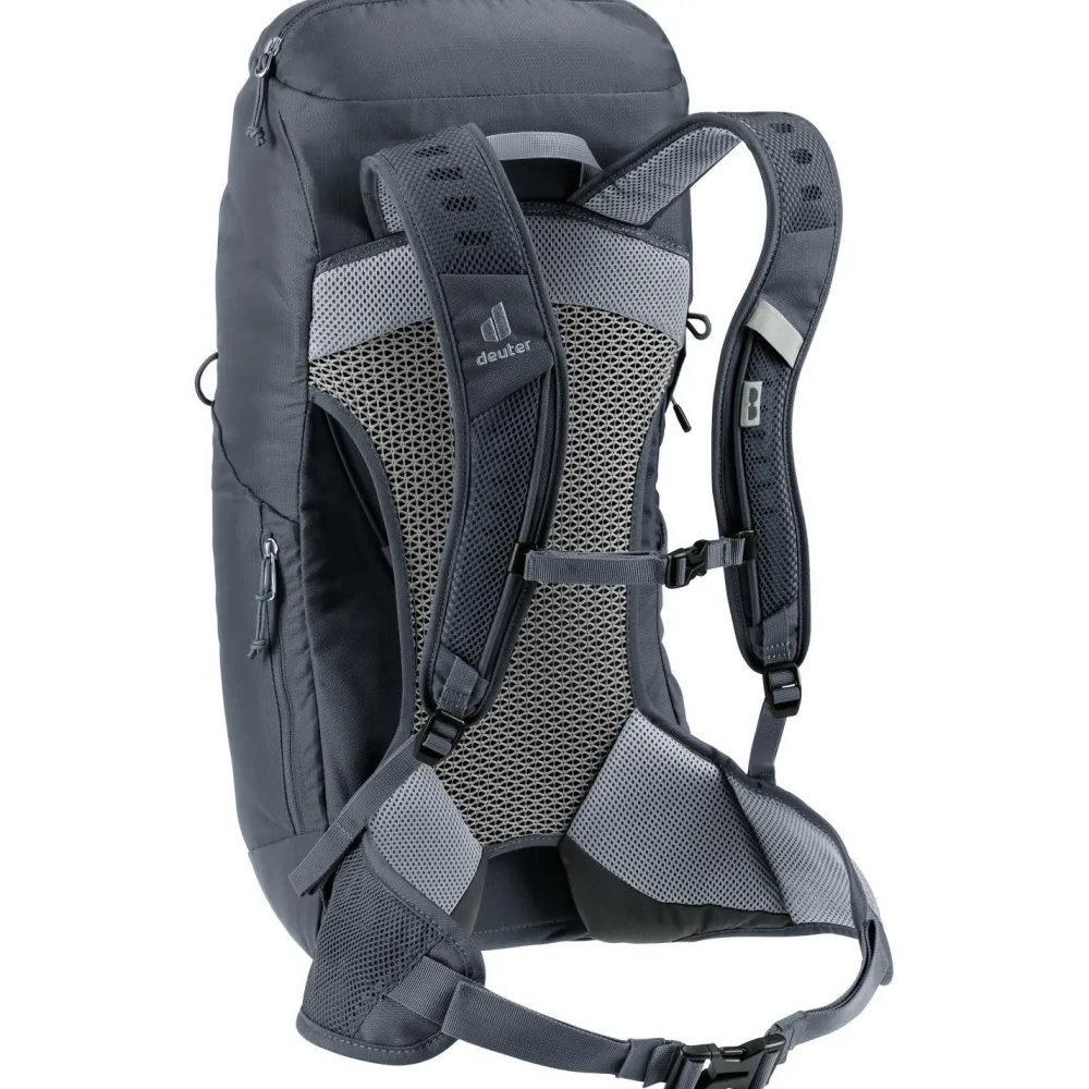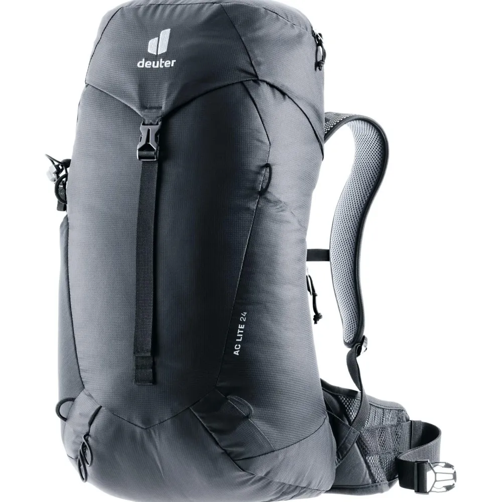 Du suchst einen leichten und bequemen Rucksack für Tagesausflüge? Der AC Lite 24 von deuter ist ein hervorragender Begleiter für Wanderungen oder Tagestrips in die Stadt.Das geringe Gewicht wird über einen ergonomisch gepolsterten Hüftgurt, den elastischen Federstahlrahmen und den höhenverstellbaren Brustgurt gut verteilt. Durch das deuter-Aircomfort Tragesystem mit dem Netzeinsatz am Rückenteil ist Dein Rücken gut belüftet und der Rucksack fühlt sich noch leichter an. Trotz seiner Leichtigkeit bietet der AC Lite 24 mit seinen vielfältigen Fächern und Halterungen Platz für die Dinge, die Du auf der Tagestour brauchen könntest.Auch für schlechtes Wetter ist der AC Lite 24 mit einer abnehmbaren Regenhülle gut ausgestattet. Der Umwelt zuliebe wurde bei dem Hauptmaterial auf recycelte Bestandteile geachtet.