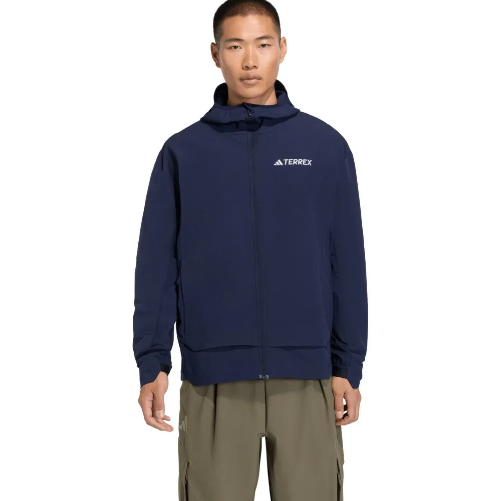 adidas Terrex präsentiert mit der MT Softshelljacke eine durchdachte Lösung für Wanderer, die Wert auf Schutz und Komfort legen. Der durchgehende Frontreißverschluss mit Kinnschutz sorgt dafür, dass nichts scheuert – selbst bei geschlossenem Kragen bleibst Du entspannt unterwegs. Die elastische Kapuze schützt Dich zuverlässig vor Windböen und leichtem Regen; dank elastischer Ärmelbündchen sowie einem elastischen Saum sitzt die Jacke immer passgenau und hält Zugluft fern.
