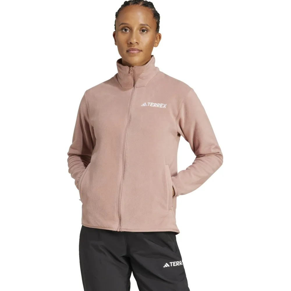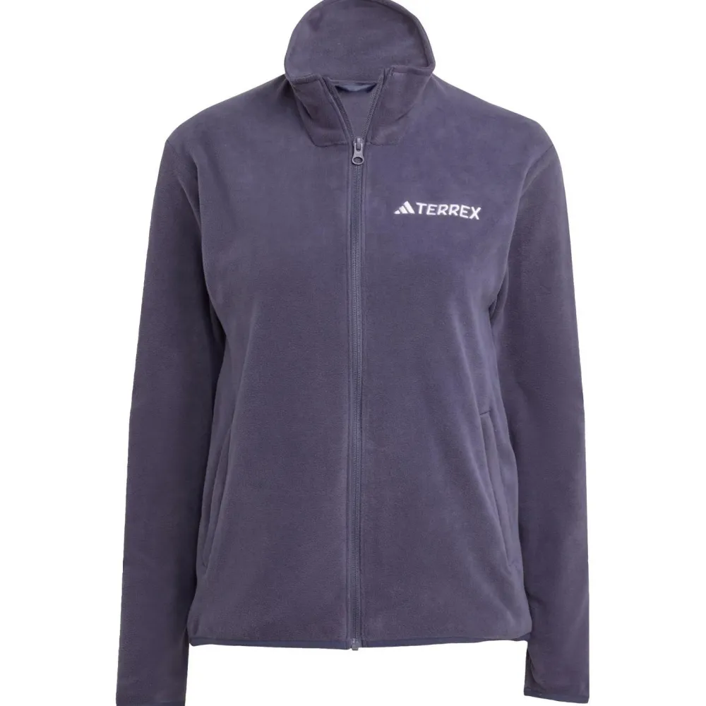 Die adidas Terrex Women’s MT Essentials Full Zip Fleecejacke kombiniert praktisches Design mit stilvollen Details, die Dir auf Deinen Wanderungen zugutekommen. Der durchgehende Front-Reißverschluss ermöglicht ein einfaches An- und Ausziehen, was besonders bei wechselnden Wetterbedingungen nützlich ist. Zwei Fronttaschen bieten Dir ausreichend Platz für kleine Gegenstände wie Schlüssel oder Handy, sodass Du Deine Hände frei hast. Der Stehkragen schützt Deinen Hals vor Wind und Kälte, während die elastischen Ärmelbündchen für einen bequemen Sitz sorgen und das Eindringen von kalter Luft verhindern.