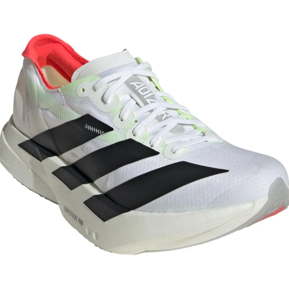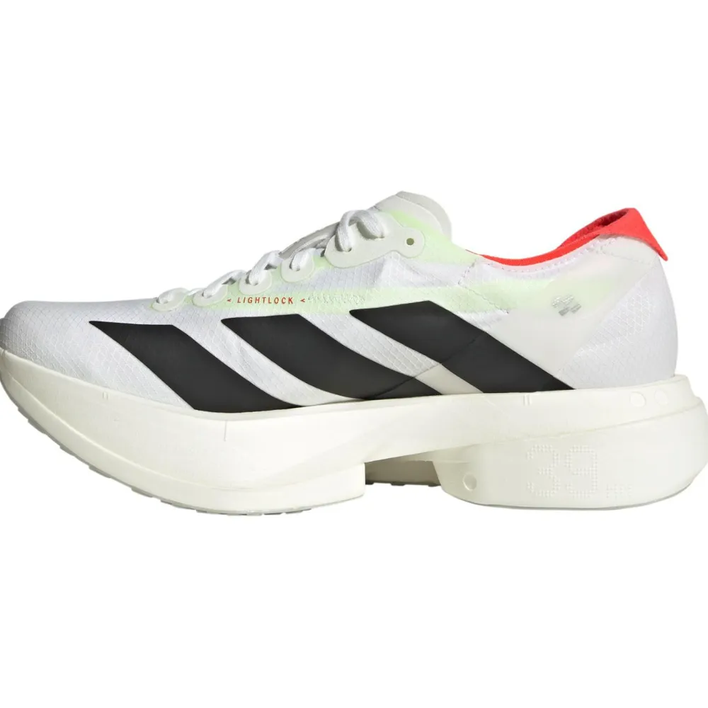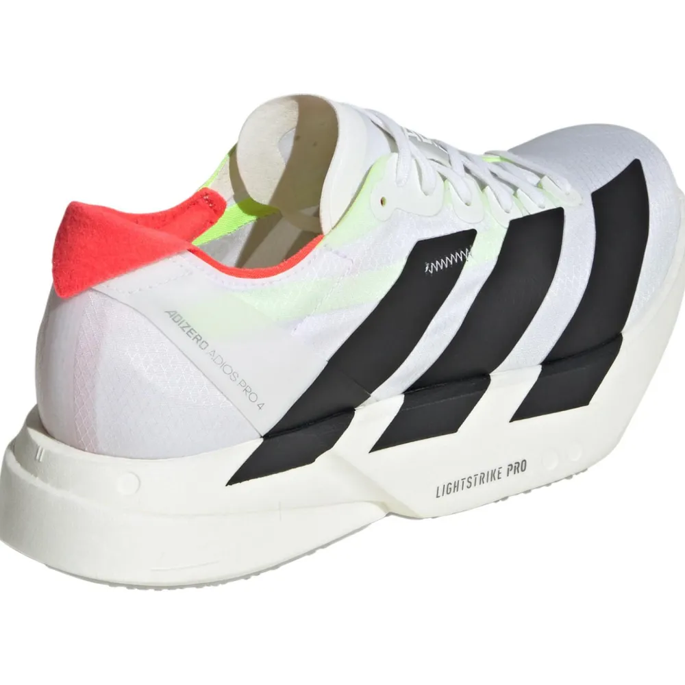 Die Women’s Adizero Adios Pro 4 von adidas sind ein wahres Meisterwerk der Technologie. Mit einer Zwischensohle, die sowohl eine Carbonplatte als auch die Lightstrike Pro Dämpfungstechnologie integriert, bieten diese Schuhe eine beeindruckende Laufökonomie. Die Carbonplatte wirkt wie ein Hebel, der Deine Energie effizienter in Vorwärtsbewegung umwandelt, während die Lightstrike Pro Dämpfung für ein federleichtes und reaktionsfreudiges Laufgefühl sorgt. Diese Kombination ermöglicht es Dir, Deine Geschwindigkeit zu maximieren und gleichzeitig die physiologische Belastung zu reduzieren – perfekt für schnellere Zeiten und einen effizienten Laufstil.