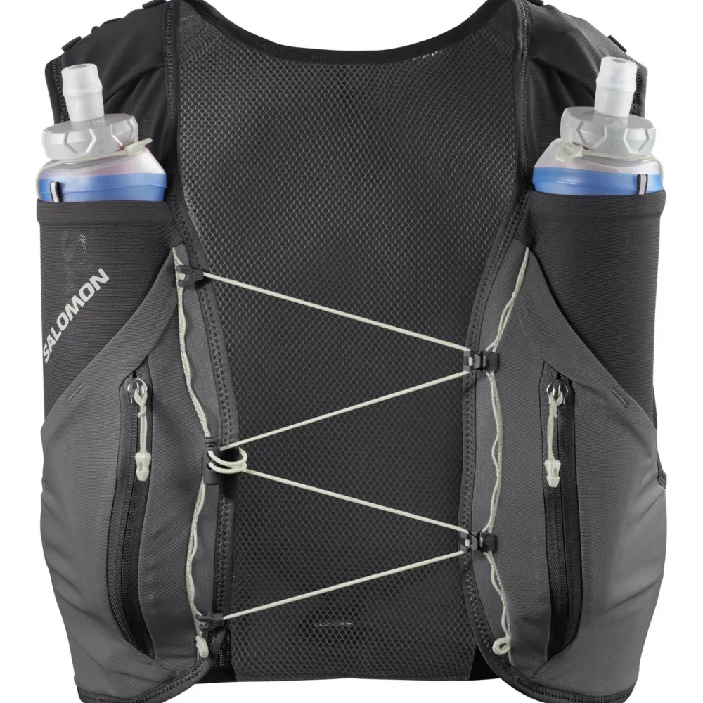 Der ADV Skin 12 Gradient Trailrunningrucksack von Salomon kann Dich auf Deinen langen und ganz langen Läufen begleiten. Mit ihm wirst Du immer genügend Wasser und Verpflegung mitnehmen können.Er wird inklusive zwei 0,5 Liter Softflasks geliefert, die Du in den zwei elastischen Fronttaschen verstauen kannst. Im Hauptfach kannst Du außerdem noch eine 2 Liter Trinkblase mitnehmen.