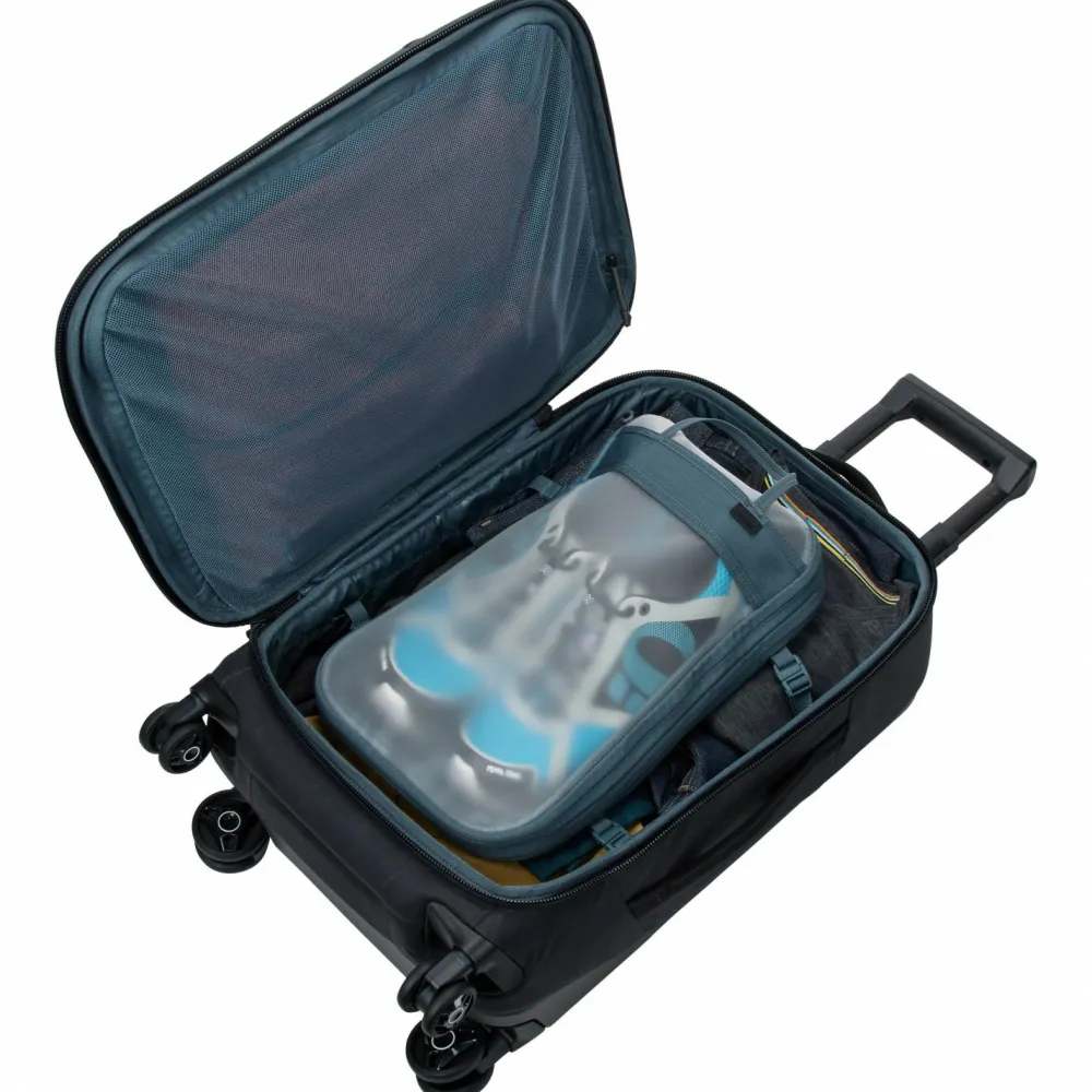 Der Aion Carry On Spinner Handgepäckkoffer von Thule ist ein strapazierfähiges Gepäckstück für Arbeit und Freizeit mit einem herausnehmbaren Packwürfel, der den Stauraum optimiert und als Tagestasche verwendet werden kann. Für aktive Reisende ist der Kompressions-Packwürfel mit einer leicht zu reinigenden TPU-Beschichtung versehen, die Schmutz, Gerüche und Feuchtigkeit einschließt – perfekt, um schmutzige Sportkleidung oder Outdoor-Ausrüstung getrennt aufzubewahren. Unterwegs gleitet er dank übergroßen Hinterrädern mühelos über unwegsames Gelände, während der V-förmige Teleskopgriff für ein sanftes und einfaches Ziehen sorgt.