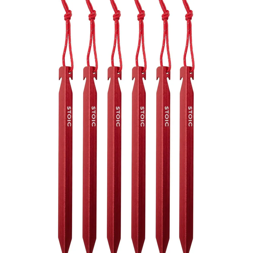 Die AL V-Stake 18 von Stoic sind dank ihrer V-Form besonders robust. Zudem sorgt die Form für einen besonders festen Halt im Boden. Daher kannst Du mit ihnen Dein Zelt sicher abspannen. Die Heringe werden im 6er-Pack geliefert und sind dank der auffälligen Farbe gut im Boden zu erkennen. Dies spart gerade beim Abbau viel Zeit. Mit den Stoic AL V-Stake 18 bist Du für Dein nächstes Campingerlebnis optimal ausgestattet!