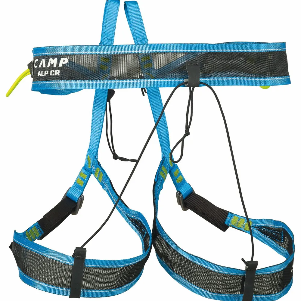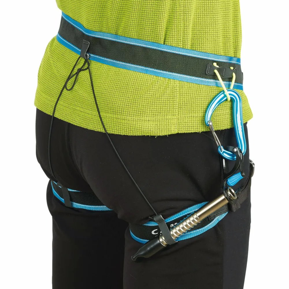 Federleichter Klettergurt für Skitourengeher: der Alp CR Klettergurt von Camp! Der ultraleichte Gurt wiegt unter 100 Gramm und ist dennoch strapazierfähig und angenehm atmungsaktiv. Die Beinschlaufen lassen sich über Aluminiumschnallen verstellen und der Hüftgurt ist über elastische Kordeln passgenau regulierbar! Eine Befestigungsmöglichkeit für Eiclipper gibt es über die strapazierfähigen Hypalon Materialschlaufen. Durch das einfache Handling lässt sich der Gurt an- und ausziehen, ohne dabei die Ski oder Steigeisen ausziehen zu müssen! Im mitgelieferten Packsack lässt sich der Klettergurt griffbereit und klein verstauen.