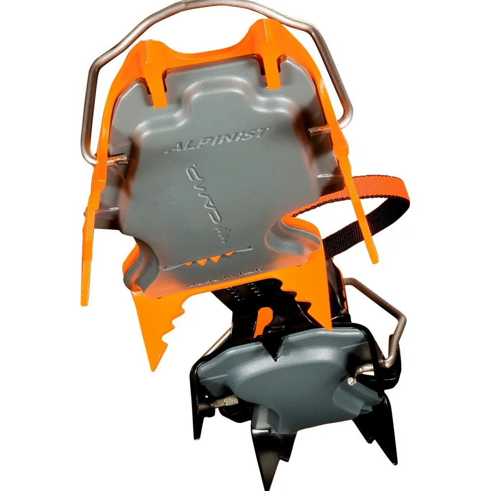 Die zweiteilige Konstruktion, deren Vorderplatte und Ferse ohne den klassischen artikulierten Verbindungssteg ineinandergreifen, garantiert eine besonders hohe Axialsteife. Hat man die Alpinist einmal eingestellt, fühlen sie sich wie ein Bestandteil des Schuhwerks an. Die strapazierfähige Antistollplatte sorgt dank ihres Designs und der Elastizität des Materials für ein wirksames Abstoßen des Schnees. Der mitgelieferte Packbeutel kann am Rucksack befestigt werden.