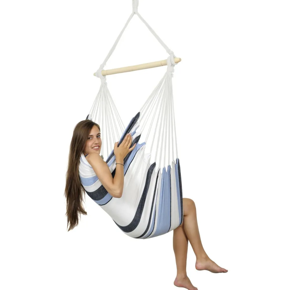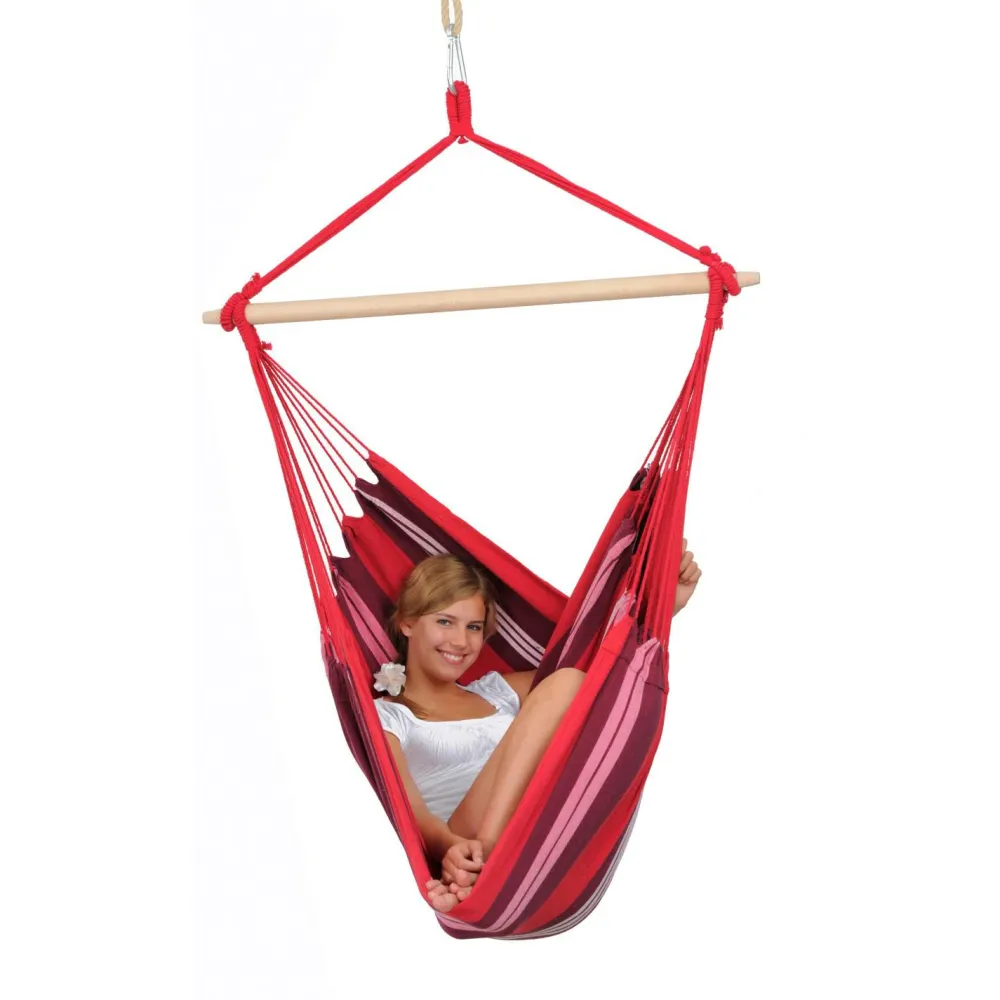 Den gemütlichen Havanna Hängesitz von Amazonas kannst Du im Garten, oder in Deinem Zimmer an der Decke befestigen. Mit seinem wetterfesten und UV-beständigen Material kannst Du ihn problemlos den ganzen Sommer über draußen hängen lassen, ohne dass er dabei zu Schaden kommt. Dank der Tragkraft von 150 kg kannst Du es Dir auch mal mit Deiner besten Freundin im Havanna Hängesitz gemütlich machen.