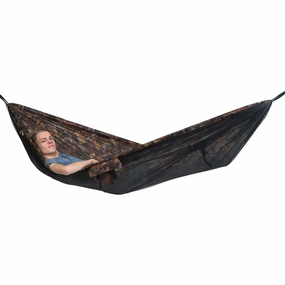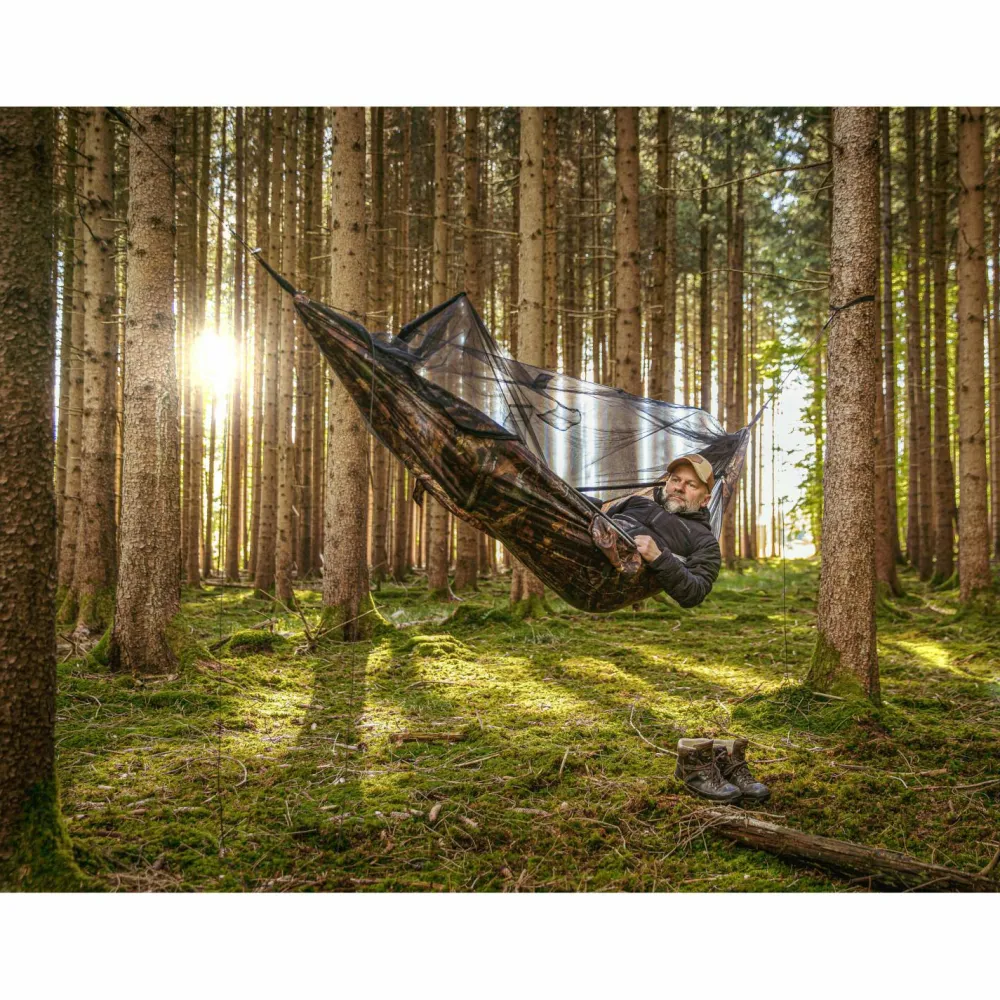 Perfekt für Übernachtungen unter freiem Himmel: die Moskito-Traveller Forest von Amazonas! Die Hängematte ist nicht nur ein echtes Leichtgewicht mit kleinem Packmaß, sondern punktet zudem auch mit der komfortablen Ausstattung. Das integrierte Moskitonetz schützt Dich dauerhaft vor fliegenden Insekten wie Moskitos und Stechmücken sowie vor kriechenden Insekten wie Zecken, Ameisen und Schaben. Der Einstieg erfolgt seitlich durch einen Doppelreißverschluss! Durch die Tarnoptik fügt sich die Hängematte unauffällig in den Hintergrund ein.