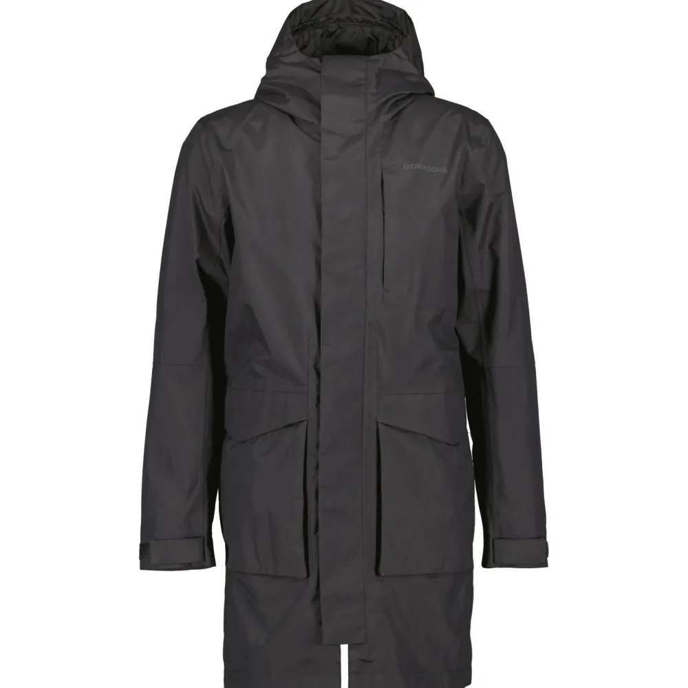 An den ungemütlichen Tagen ist der Mantel Andreas Parka 2 von Didriksons der ideale Partner! Dank wasser- und winddichter Membran liefert er einen zuverlässigen Wetterschutz. Zudem ist das Material atmungsaktiv, damit sich keine Feuchtigkeit anstaut. Mit der verlängerten Passform werden empfindliche Zonen optimal geschützt. Praktische Taschen bieten Platz für Kleinigkeiten. Reflektierende Details runden das Konzept ab. Ein Allrounder für Alltag und Freizeit!