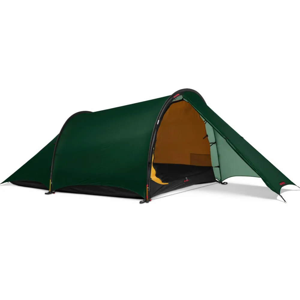 Das ideale 2-Personenzelt für alle, die ein vielseitiges und robustes Zelt für drei Jahreszeiten und viel Platz suchen: Das Anjan 2 von Hilleberg! Das Zelt überzeugt von Grund auf durch die bewährte Hilleberg-Qualität und die zahlreichen durchdachten Details. So ist die Innenzelttür vollflächig mit Mesh versehen und auch der hintere Bereich ist mit einer großen Meshfläche ausgestattet. Das Ergebnis ist eine zuverlässige Belüftung besonders auch an warmen Tagen. Zudem lässt sich der komplette hintere und vordere Außenbereich aufrollen, was an sehr warmen Tagen für eine super Belüftung sorgt. Unterstützt wird die Belüftung durch die bogenförmigen Außenkanten, die so einen guten Luftaustausch zulassen. Innen- und Außenzelt sind für einen möglichst schnellen Aufbau gekoppelt und es werden insgesamt nur 4 Heringe benötigt um das Zelt minimalistisch aufzubauen. Im Vergleich zum Vorgängermodell sind die Gestängekanäle für das seht stabile 9 mm DAC Gestänge nur noch an einer Seite komplett offen, so gelingt der Aufbau noch schneller, insbesondere, wenn der Wind einmal auffrischen sollte.Dank der bewährten Tunnelkonstruktion bietet das Zelt sehr viel Platz und auch das Gepäck findet in der Apside einen sicheren und geschützten Platz. Das Kerlon 1000 Material des Außenzeltes ist dabei sehr zuverlässig und beständig, so dass man viele Jahre Freude an dem Zelt hat. Das Material verfügt zudem über eine hervorragende Weiterreißfestigkeit, was bedeutet, dass auch wenn sich einmal ein kleines Loch durch Beschädigung im Außenzelt ergeben sollte, sich dieses nicht so schnell von selbst vergrößert. Ganz egal ob man alleine oder zu zweit unterwegs ist, mit dem Anjan 2 von Hilleberg hat man stets einen sicheren und zuverlässigen Unterschlupf dabei, der einen auf viele Touren begleiten wird!