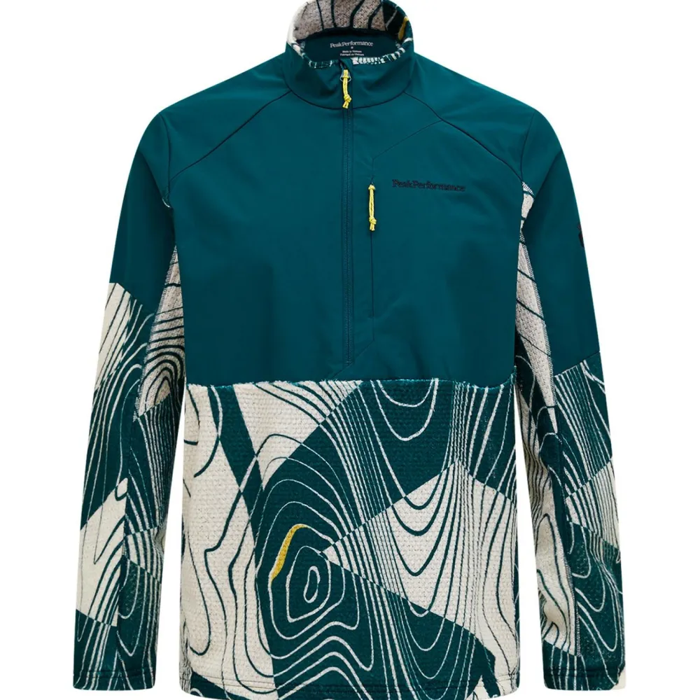Die Aop Freelight Alpha Half Zip von Peak Performance wurde entwickelt, um Wärme zu speichern und Feuchtigkeit abzuleiten. Sie ist atmungsaktiv und schnelltrocknend. Die Fleecejacke wurde aus Polartec® Alpha Strickgewebe hergestellt. Dieses leitet Feuchtigkeit aktiv ab, und bietet hervorragende Atmungsaktivität bei intensiven Aktivitäten in kalter oder feuchter Umgebung. Die verstärkte Rückenpartie sorgt für zusätzliche Strapazierfähigkeit und Komfort beim Tragen eines Rucksacks über längere Zeiträume. Die Flachnähte gewährleisten ein reibungsloses Tragegefühl. Der moderne und sportliche Look kann vielseitig kombiniert werden und ist schon von Weitem ein echter Hingucker.