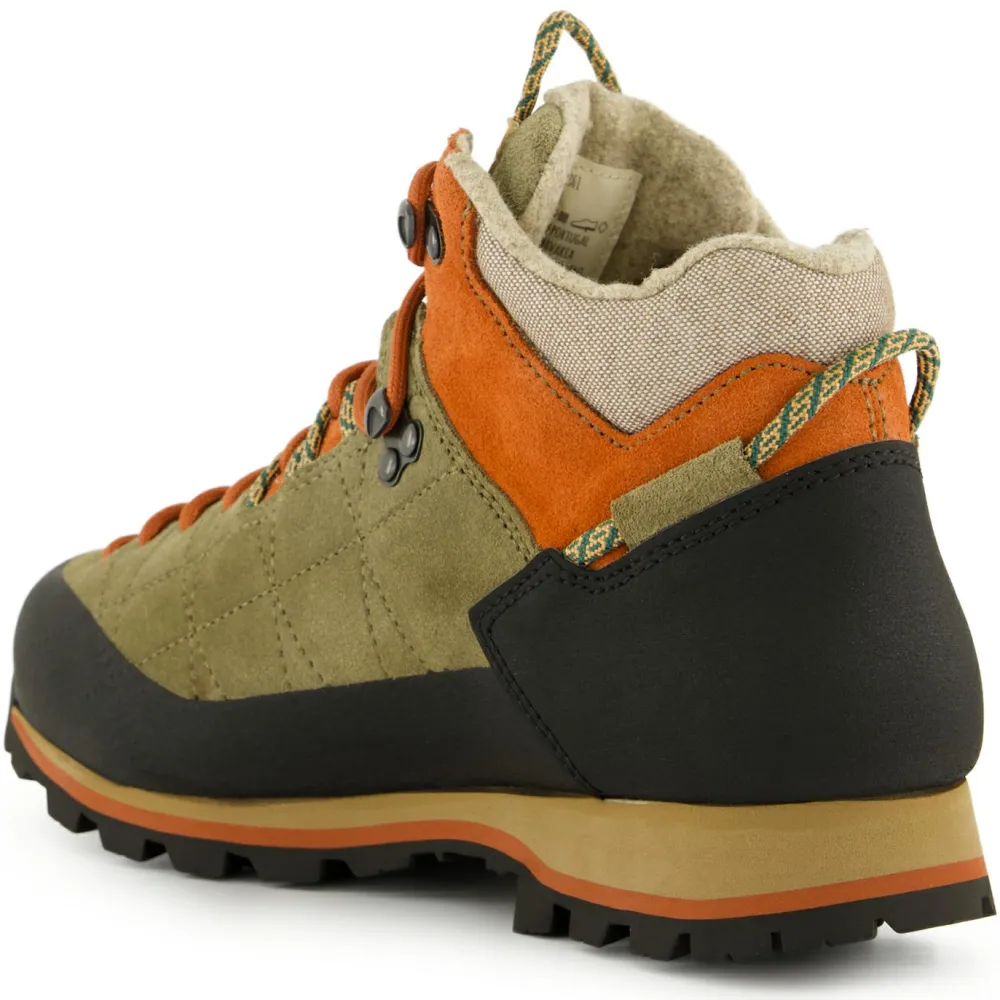 Das Fußbett aus recyceltem Kork und das Innenfutter aus abriebfestem Loden sorgen für ein hervorragendes Fußklima dank feuchtigkeitsregulierender und atmungsaktiver Eigenschaften. So fühlen sich Deine Füße auf langen Wanderungen rundum wohl.