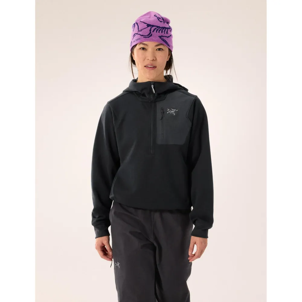 Die Women’s Aestas Pullover Hoody von Arc’teryx ist die perfekte Fleecejacke für den steilen Fels! Ihr nach innen weiches und nach außen kompaktes Polartec Power Air Hardface Fleece wärmt effizient und bietet ungemütlichem Wetter in der Felswand die Stirn. Außerdem ist dieses überwiegend recycelte Gewebe unempfindlich gegen Pilling und Abrieb. Seine glatte Oberfläche verbessert die Strapazierfähigkeit und lässt sich bequem anziehen oder ablegen.