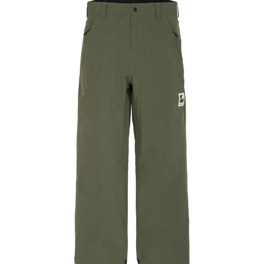Die Skihose kommt mit einem zweilagigen Gewebe um die Ecke, das richtig was auf dem Kasten hat. Nicht nur ist das Material mit einer Wassersäule von 10.000 mm und getapten Nähten absolut wasserdicht, sondern wartet auch noch mit höchster Atmungsaktivität und einem Stretchfaktor für ordentlich Bewegungsfreiheit auf. Die leichte Polyfill Kunstfaserisolation sorgt für wohlige Wärme bei brausend kalten Abfahrten und das Innenfutter aus gebürstetem Trikotstoff legt nochmal eine Portion Komfort mit in die Waagschale. Die stark beanspruchten Stellen sind zusätzlich gewebeverstärkt und Gamaschen an den Beinabschlüssen dürfen natürlich auch nicht fehlen. Topp!