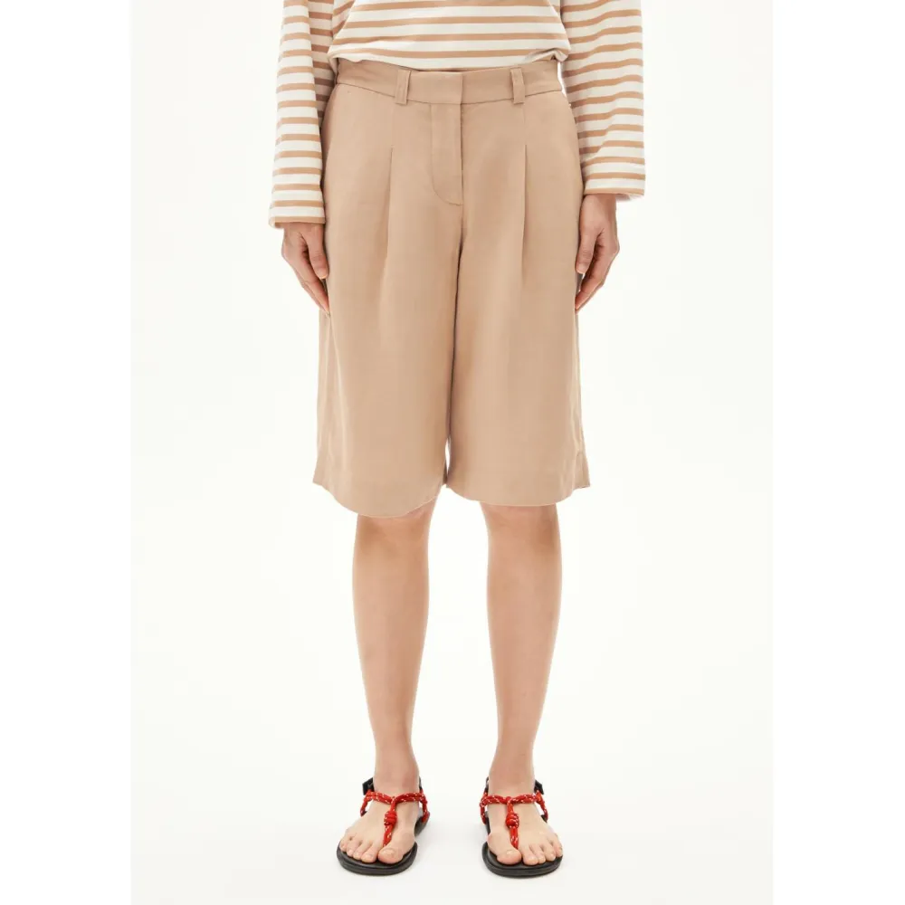 Die Women’s Namaal Lino Shorts von ARMEDANGELS sind aus einer hochwertigen Mischung von Viskose und Leinen gefertigt. Viskose bietet eine weiche und fließende Textur, während Leinen für Atmungsaktivität und Kühlung sorgt. Ideal für warme Tage, bei denen Du Dich wohlfühlen möchtest.