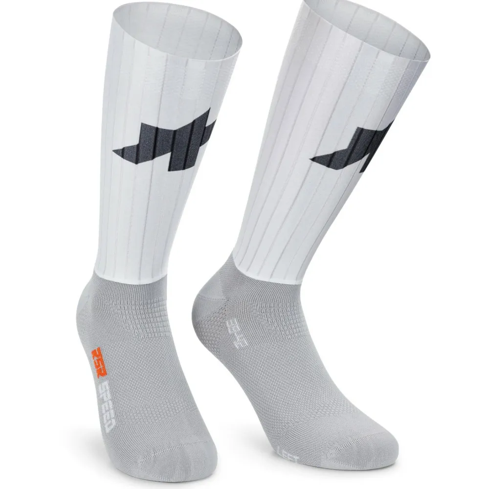 Die ASSOS RSR Speed Socks S11 sind aus hochwertiger Kunstfaser gefertigt, die für ihre Strapazierfähigkeit und Pflegeleichtigkeit bekannt ist. Das nahtlose Design sorgt dafür, dass Du keine Druckstellen spürst, selbst bei langen Fahrten. Besonders hervorzuheben ist das aerodynamische 550CX-Material am Unterschenkel, das den Luftwiderstand reduziert und Dir so einen kleinen Vorteil auf dem Rad verschafft. Diese Socken sind ideal für ambitionierte Biker, die sowohl Funktionalität als auch Komfort schätzen.