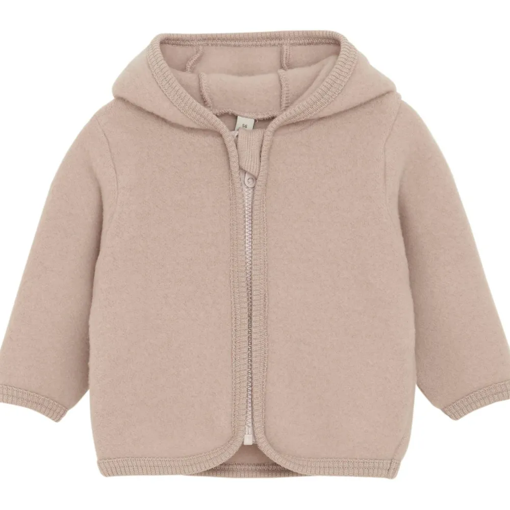 Niedliche Wolljacke für die Kleinsten: die Baby’s Jacket Bear Ears Wool Fleece von Huttelihut.