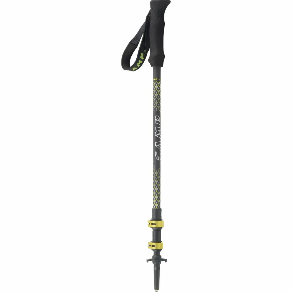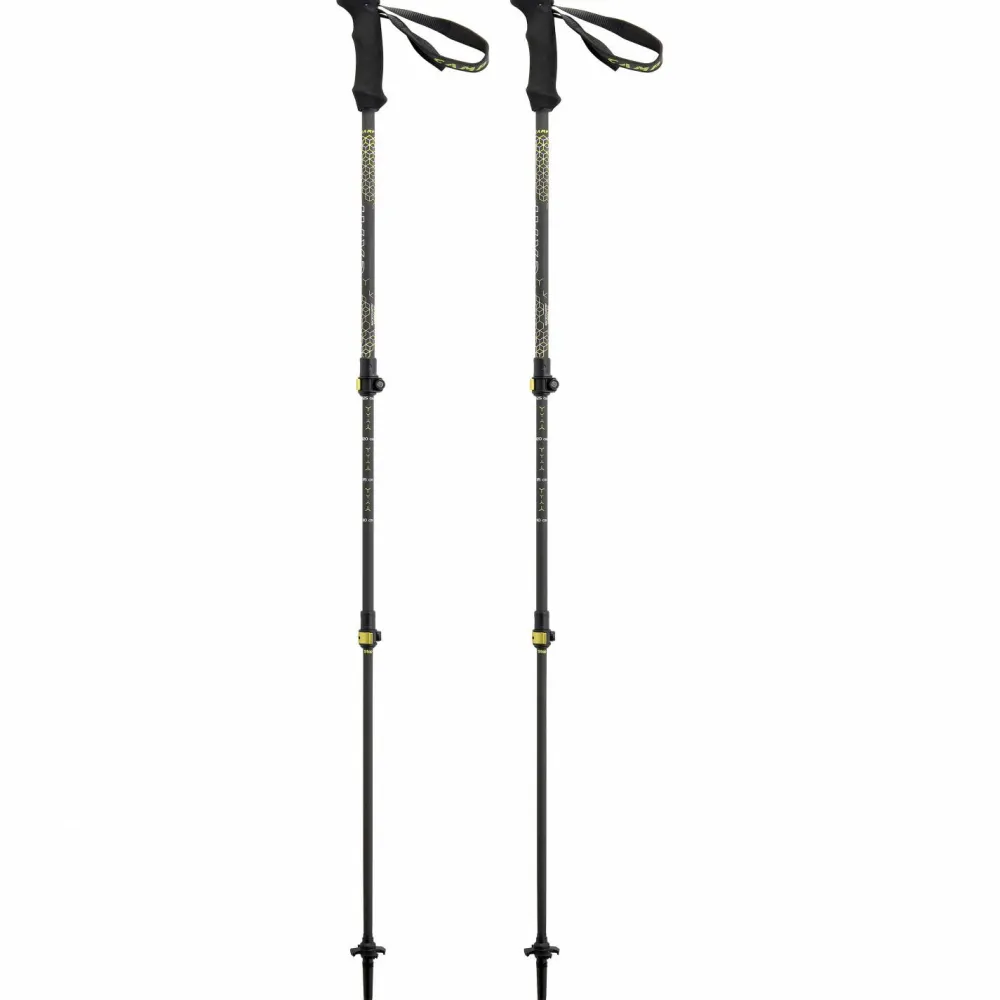 Der Backcountry Carbon 2.0 von Camp ist ein leichter, komfortabler Trekkingstock. Die Länge kann durch das Teleskopsystem mit Aluminiumclips schnell und individuell eingestellt werden. Die Spitzen sind aus Hartmetall gefertigt, gewährleisten einen sicheren Halt und sind sehr robust. Für ein Höchstmaß an Komfort sind die Griffe mit Schaumstoff verkleidet und die Halteschlaufen ergonomisch geformt. So sind auch lange Touren auf anspruchsvollem Terrain kein Problem. Die Stöcke wiegen nur 380 Gramm und bestehen aus drei Segmenten. So können sie auch leicht am Rucksack befestigt werden.