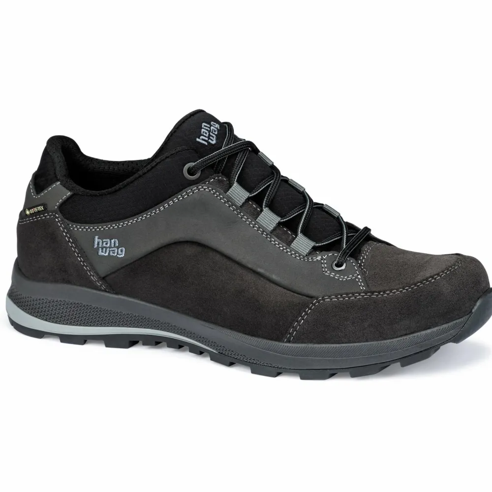Der Banks Low GTX von Hanwag ist ein niedriger Multisportschuh mit hohem Tragekomfort! Er eignet sich nicht nur für den Alltag und für die Freizeit, sondern auch zum Reisen und für leichte Wanderungen im Flachland. Sein Obermaterial aus Leder und Synthetik ist nicht nur hochwertig und damit gut aussehend, sondern auch besonders abriebfest für eine lange Lebensdauer. Das GORE-TEX Innenmaterial sorgt darüber hinaus für wasserdichte sowie atmungsaktive Eigenschaften. Somit genießt Du stets einen trockenen Tragekomfort – selbst bei Regen. Apropos Tragekomfort: Die Kombination aus verstärktem PU-Schaumkeil und hochwertiger Einlegesohle macht das Laufen in dem Schuh super angenehm.