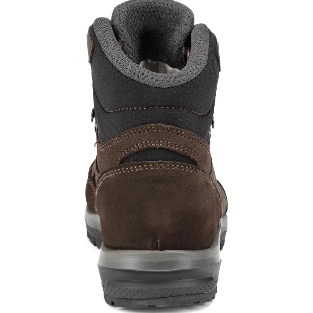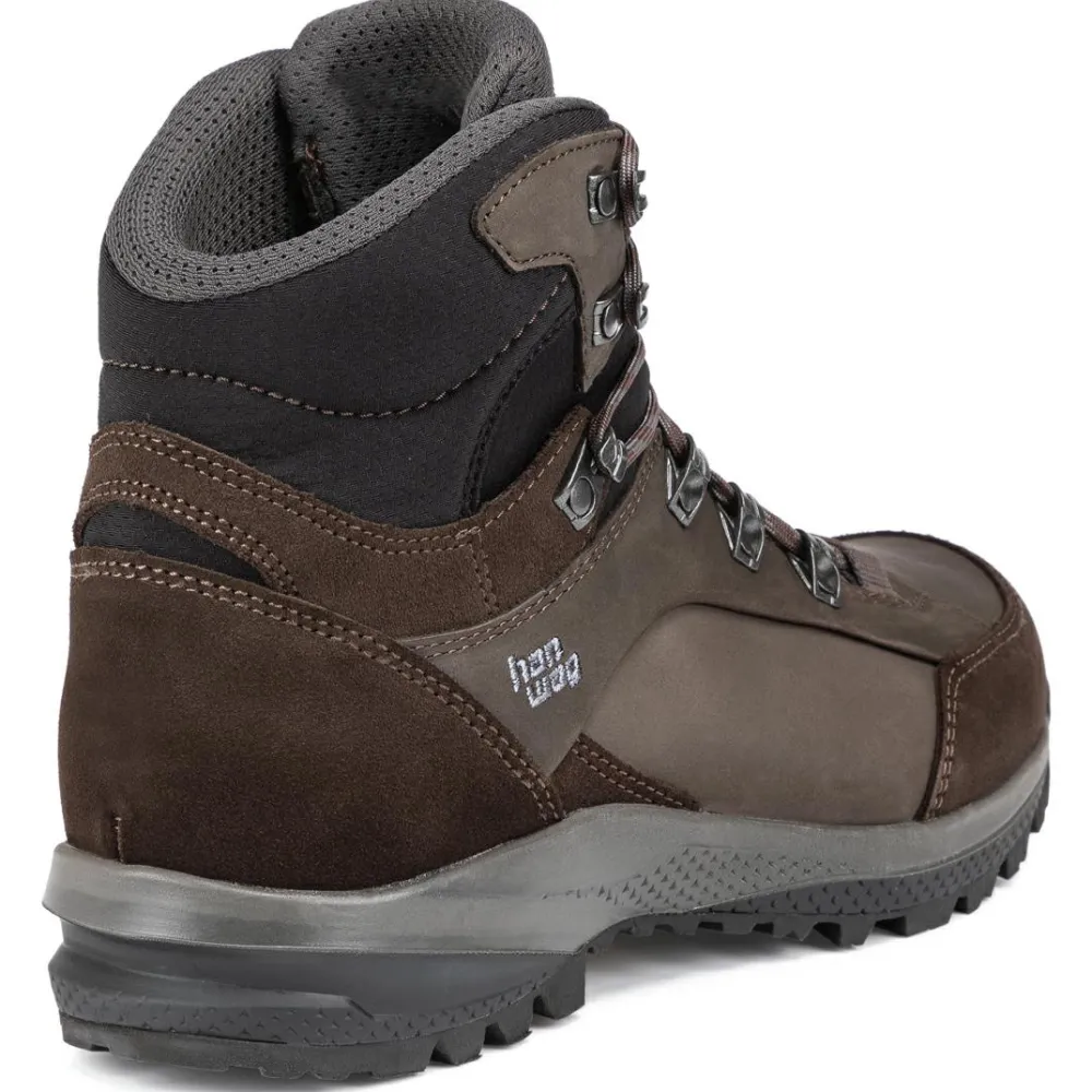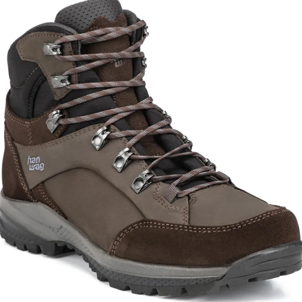 Mit dem Banks SF Extra vom bayerischen Wanderschuh-Traditionshersteller Hanwag kann es auf die Piste gehen! Egal, ob Du in eher flachem Gelände wandern oder in den Bergen von Hütte zu Hütte trekken möchtest, die Banks SF Extra sind in jedem Fall treue und zuverlässige Begleiter. Das Nubukleder ist geschmeidig und die Passform daher angenehm, und dank etwas vergrößertem Vorfußbereich hast Du genügend Platz und einen erhöhten Gehkomfort. Die in diesem Schuh außerdem verbaute bewährte Vibram-Sohle sorgt für Grip und gutes Vorankommen im Mittelgebirge und Voralpenland. Der über der Sohle liegende Schaumkeil aus PU macht die Dämpfung weich und die Abrollbewegung natürlich und angenehm. Das geschmeidige Lederfutter passt sich Deinem Fuß über die Zeit perfekt an und trägt zum hohen Tragekomfort entscheidend bei.