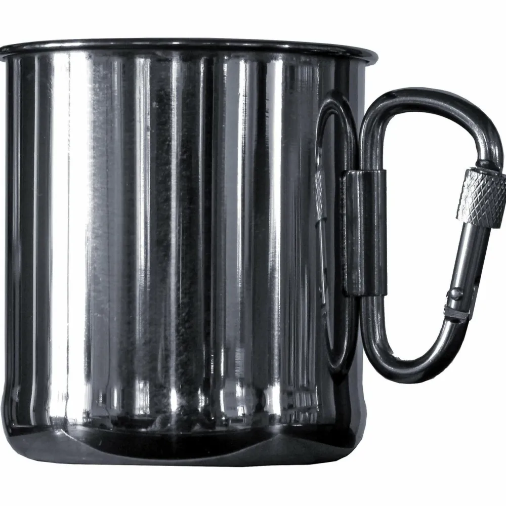 Damit verbrennt man sich nicht die Finger und der Tee bleibt länger warm: Der Thermobecher Karabiner von Basic Nature. Er ist doppelwandig konstruiert, wodurch die Übertragung der Temperatur vermindert wird. Edelstahl macht den Thermobecher Karabiner richtig robust und langlebig. Der Clou: Er hat einen Karabiner als Griff, der eingeklappt werden kann und per Schraubsicherung einfach außen am Rucksack angebracht wird.