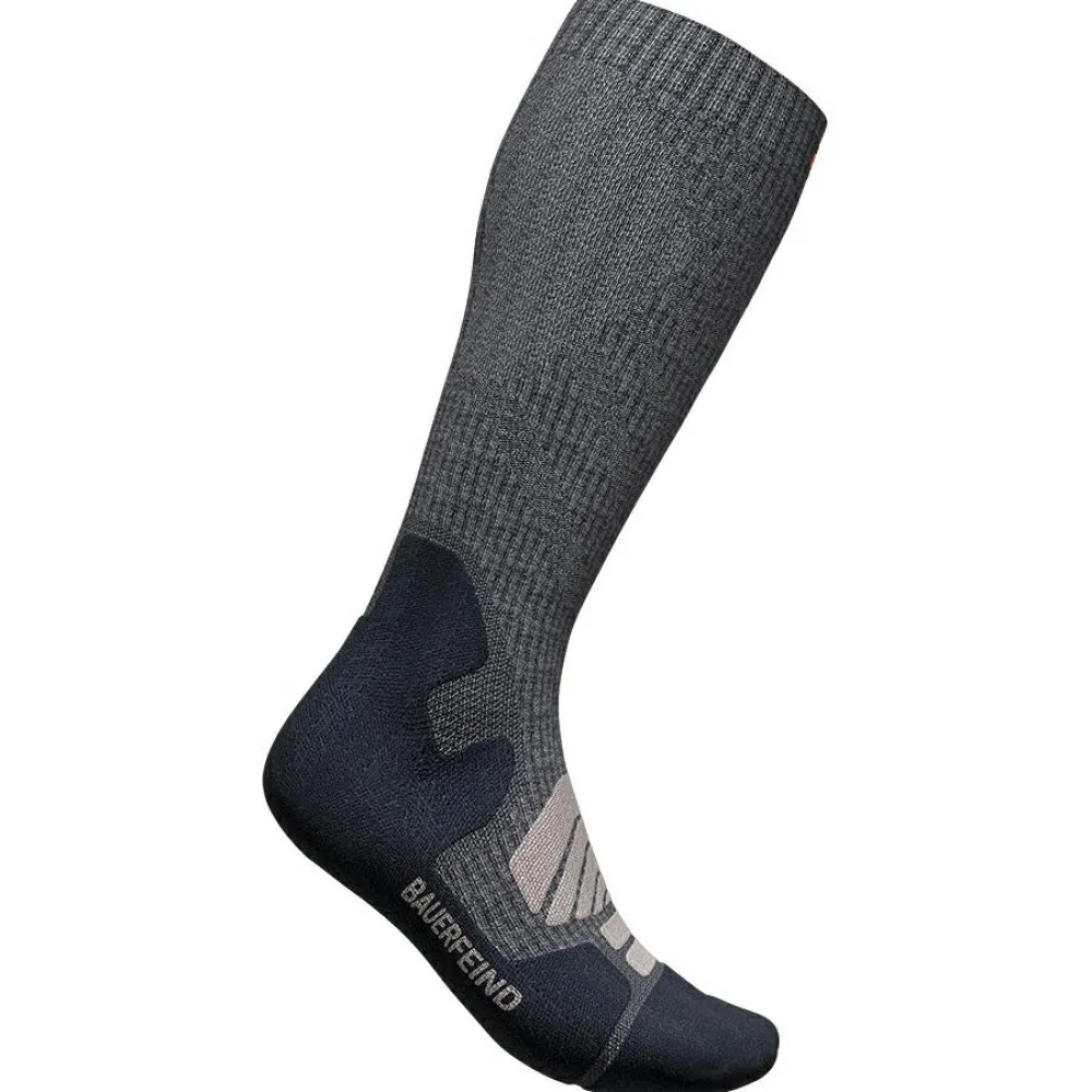 Die Bauerfeind Sports Outdoor Merino Compression Socks geben durch spezielle Kompressionszonen Power für Wanderungen auf jedem Terrain. Die gezielte Kompression fördert die Durchblutung und verbessert die Muskelökonomie. So ermüden die Waden langsamer und bleiben auf langen Touren leistungsfähiger. Der hohe Anteil an wohltuender Merinowolle bietet hervorragenden Tragekomfort: Die Naturfaser hält die Füße trocken und frisch – ein wahres Naturtalent mit Klimaregulation.
