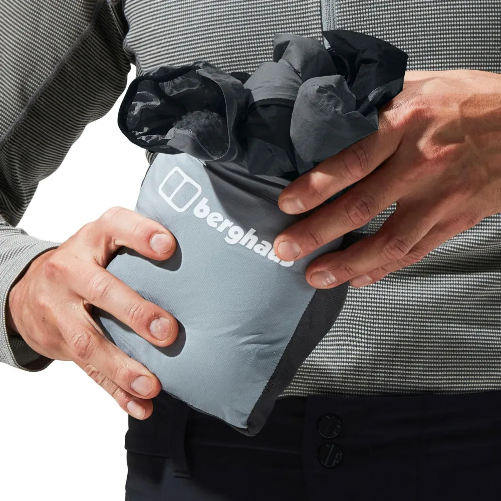Die MTN Guide Hyper Alpha Jacket Regenjacke von Berghaus punktet beim sportlichen Einsatz mit ihrem extrem geringen Gewicht und einer ganzen Menge funktionaler Eigenschaften. Für den Transport lässt sie sich auf ein Minimum ihrer Größe komprimieren und ist einfach im Rucksack zu verstauen. Rückt schlechtes Wetter an, ist die Jacke bereit Dir zu helfen trocken zu bleiben und den Regen in die Schranken zu weisen. Auch Wind hat keine Chance, sich einen Weg ins Innere der Jacke zu bahnen. Für den Schutz des Kopfbereiches sorgt die Kapuze.