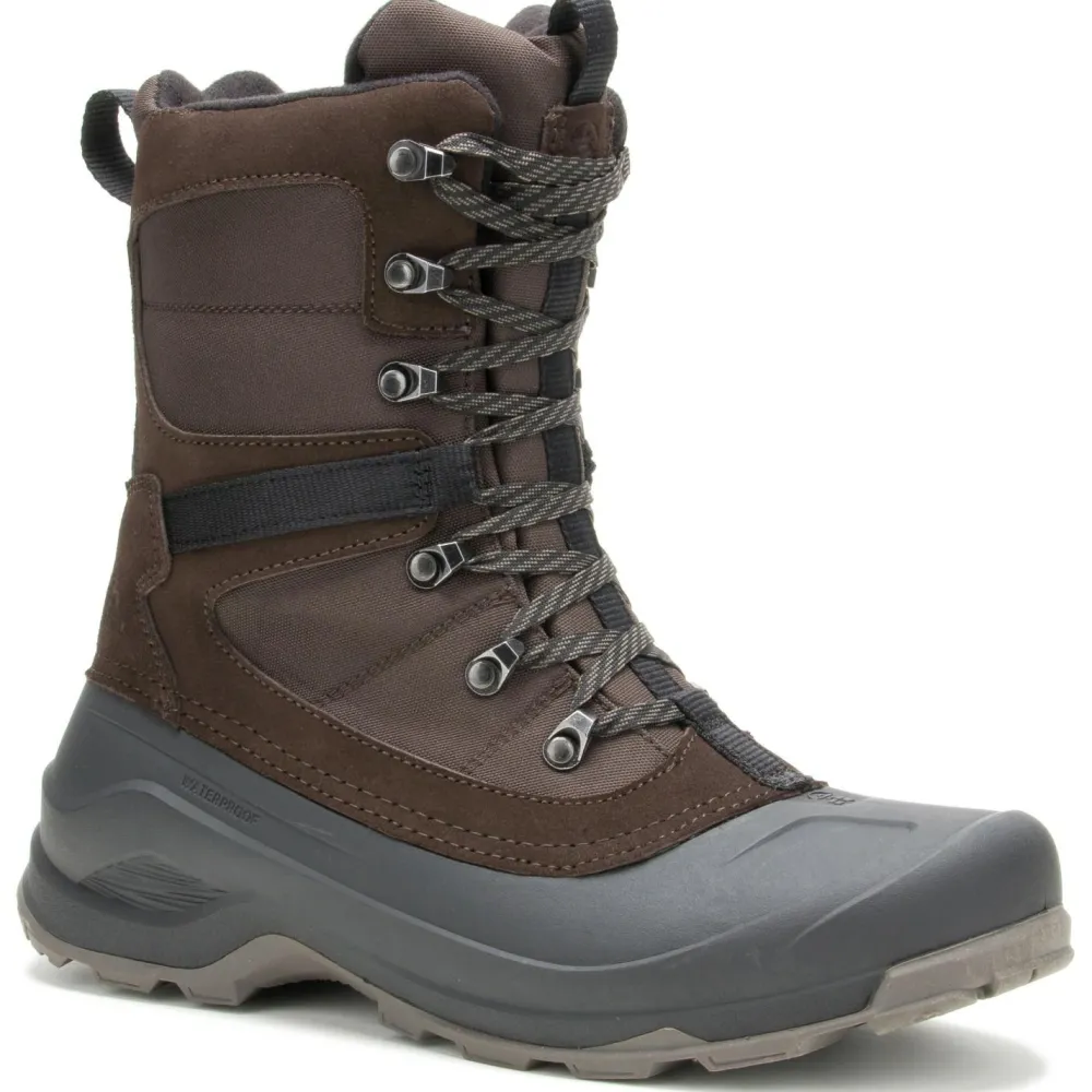 Durch die praktischen Anziehschlaufen im Fersenbereich lassen sich die Schuhe selbst mit kalten Händen bequem anziehen. Im unteren Bereich sind die Winterstiefel aus robustem Gummi gefertigt. Im oberen Teil sind die Winterschuhe aus weichem Leder hergestellt. Durch abgeklebte Nähte sind die Freizeitschuhe wasserdicht und lassen keine Nässe eindringen. Die Schnürung ist mit mehreren Zughaken ausgestattet, damit die Kamik Empire X bei jeder Wintertour bequem an Deinen Fuß sitzen.