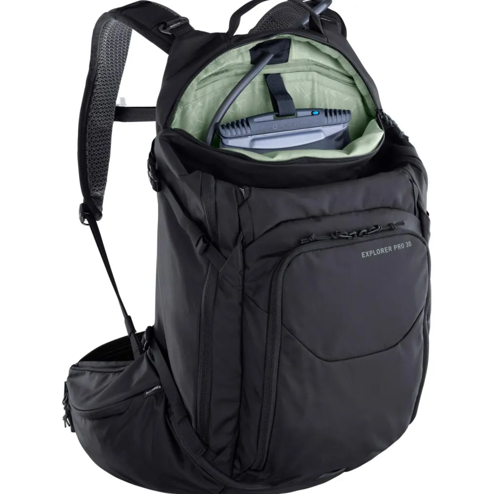 Für lange Radtouren und ordentlich Gepäck wurde der Explorer Pro 30 von Evoc entworfen. Dieser Bike-Rucksack begleitet Dich bei Tages- und Wochenendtouren. Durch sein Fassungsvermögen von 30 Litern kannst Du darin allerhand Ausrüstung und Gepäck verstauen. Praktisch sind dabei vor allem auch die verschiedenen Fächer und Halterungen, die für eine gute Struktur des Inhalts sorgen. Auch an eine Helmhalterung und eine Regenhülle wurde bei diesem Modell gedacht.