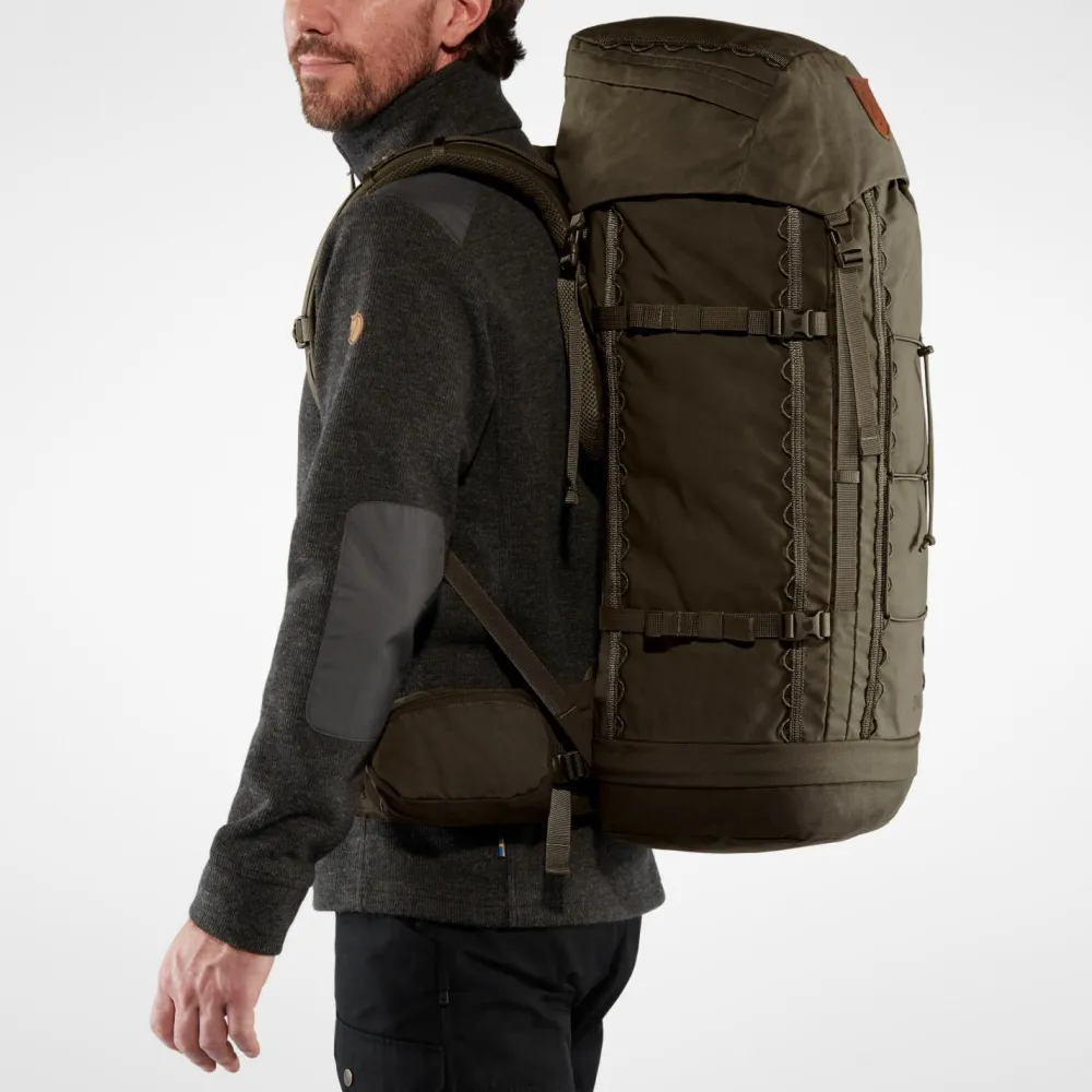 Mit jeder Menge Platz und einem robusten Rucksack, können die Trekkingtouren mit dem Singi 48 von Fjällräven kommen. Durch die Öffnung an der Unterseite des Rucksacks, kann zu jeder Zeit auch von unten Zugriff zum Hauptfach stattfinden. Die seitlichen Kompressionsriemen ermöglichen eine Fixation des Rucksacks und verhindern störende Hebelwirkungen beim Tragen. Der gepolsterte Hüftgurt verfügt über zwei RV-Taschen und liegt sehr angenehm an. In Kombination mit dem stabilen Holzrahmen und dem gepolsterten Rückenteil ermöglicht der Rucksack einen hohen Tragekomfort auch bei langen Einsätzen. Das integrierte Regencover lässt sich bei langen Regenfällen einfach über den Rucksack ziehen und schützt Denselben und damit auch die darin transportierten Gegenstände vor Nässe. Neben den vielen funktionalen Eigenschaften sieht der Rucksack einfach lässig aus und macht eine hervorragende Figur.