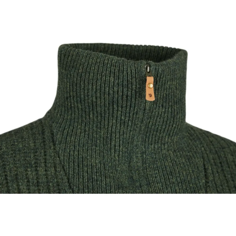 Mit dem Women’s Övik Half Zip Knit von Fjällräven bist Du im Winter und Herbst schön warm und äußerst bequem gekleidet. Der dicke Damenpullover besteht aus 100 Prozent herrlich weicher Bio-Wolle und bietet dank des etwas weiteren Schnitts viel Bewegungskomfort. Das hochwertige Strickgewebe ist zudem sehr strapazierfähig und an den Ellenbogen verstärkt. An diesem Oberteil wirst Du lange Freude haben!