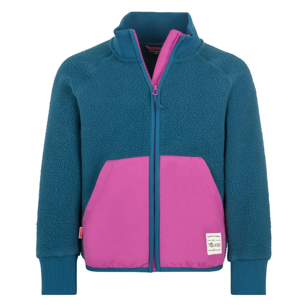 Eine lässige und schicke Fleecejacke gibts mit der Girl’s Vega Jacket von Trollkids. Diese Jacke eignet sich hervorragend als zusätzliche Kleidungsschicht an kälteren Tagen und kann alternativ auch als Ersatz für einen Pullover getragen werden. Durch das schicke Design und das hochwertige Material ist sie dabei für den Alltag und zahlreiche Outdooraktivitäten bestens geeignet. Praktisch in zwei Fronttaschen können allerlei Kleinteile verstaut und bei Bedarf auch die Hände gewärmt werden. Elastische Ärmelbündchen sorgen außerdem für einen guten Abschluss der Fleecejacke.