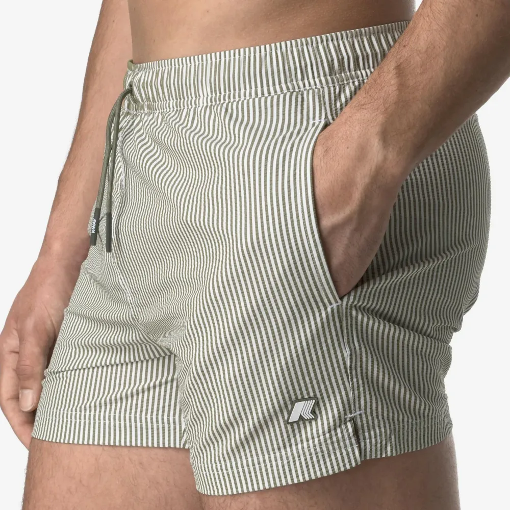 Die Hazel Mid Stripes Beach Badehose von K-Way punktet mit ihrem schlichten, klaren Design und den vielen praktischen Taschen. Sie verfügt über zwei Seitentaschen, eine Gesäßtasche sowie ein kleines Münzfach auf der Innenseite.