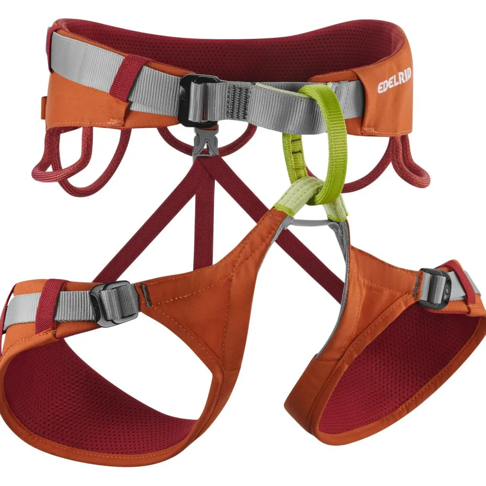 Die vollständig zu öffnenden, selbstblockierende Slide Block-Schnallen im Hüftgurt und in den Beinschlaufen ermöglichen das einfache Anlegen und Ausziehen des Klettergurts beim Tragen von Ski oder Steigeisen. Ein roter Verschleißindikator ist in den tragenden Bändern an Hüftgurt und Beinschlaufen eingearbeitet. Er signalisiert, wann der Gurt ersetzt werden muss.