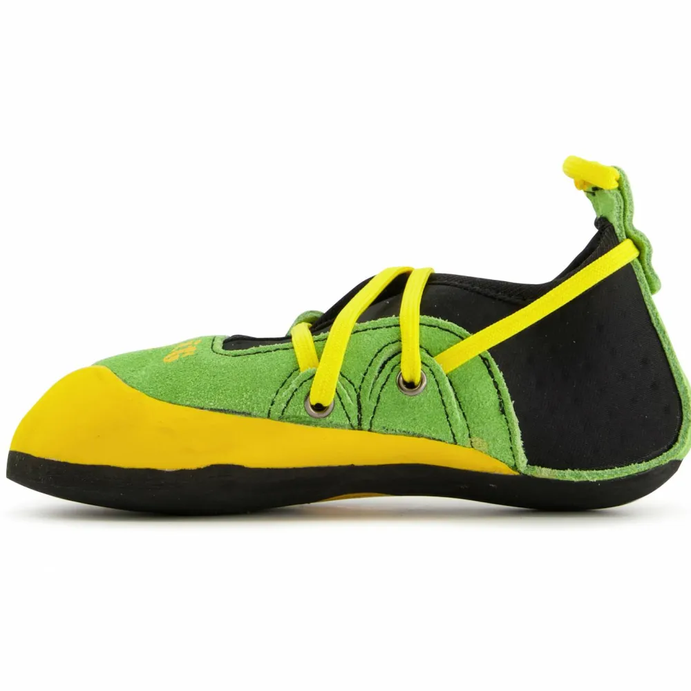 Die Kinderkletterschuhe bringen alles mit was kleine Kletterer an der Wand benötigen. Gute Passform, robuste Materialien und das Gefühl schon zu den ganz Großen zu gehören. Gerade bei Kindern kommt es besonders auf Komfort und bequemen Spaß beim Klettern an. Deshalb kommen die Stickit ganz ohne Vorspannung oder Asymmetrie zurecht. Dafür besitzen sie ein besonderes Schnürsystem, das kinderleicht zu bedienen ist und sich stufenlos bei jedem Anziehen den wachsenden Kinderfüßen anpasst. Mit einem Handgriff zeiht die Gummischnürung den Fersenbereich nach vorne und sorgt so für optimalen Halt. Ab an die Wand mit der nächsten Kletter-Generation!