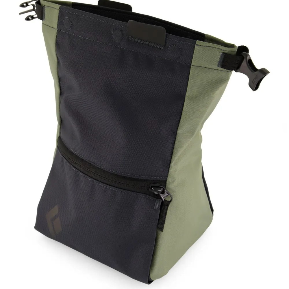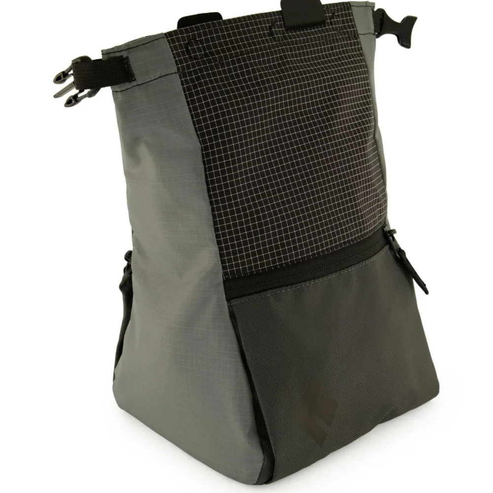 Bei erhöhtem Chalkbedarf für kleinere Boulder- und Klettergruppen oder Projekten, die einfach etwas mehr Chalk verbrauchen, bietet das Mondo Chalkbag von Black Diamond genügend Platzreserven. Das Chalkbag ist sehr groß, steht absolut stabil und wird mit einem Rollverschluss sicher verschlossen und transportiert.