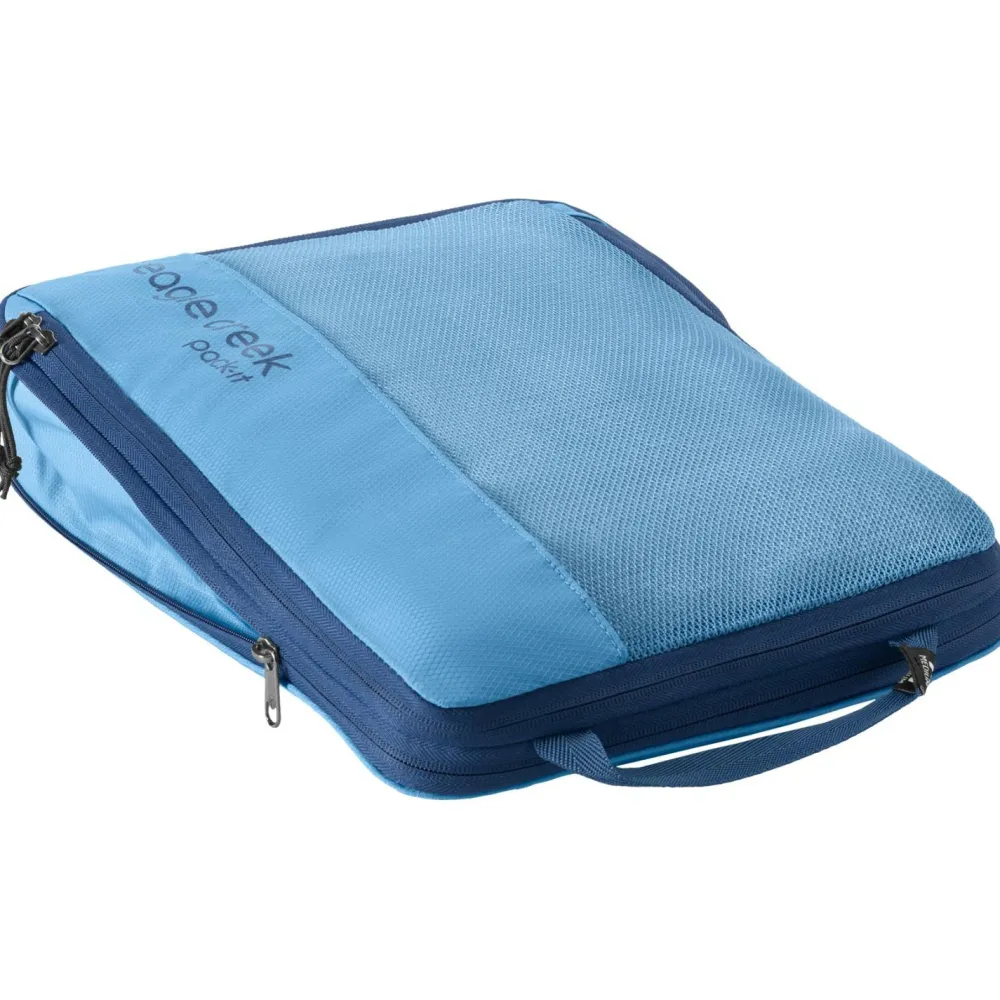 Der Pack-It Reveal Compression Cube M Packsack von Eagle Creek ist ein robuster und langlebiger Begleiter für Reisen aller Art. Ob Du mit dem Backpack durch die Natur wanderst, oder eine Hüttentour in den Bergen machst ist ganz egal. Kleinigkeiten lassen sich in dem Beutel einfach verstauen und sind unterwegs jederzeit griffbereit. Der Tragegriff ermöglicht ein einfaches Handling, während die Reißverschlüsse eine Verkleinerung des Packmaßes bieten, die dann zum Tragen kommt, wenn der Packsack leer transportiert oder gelagert werden soll.