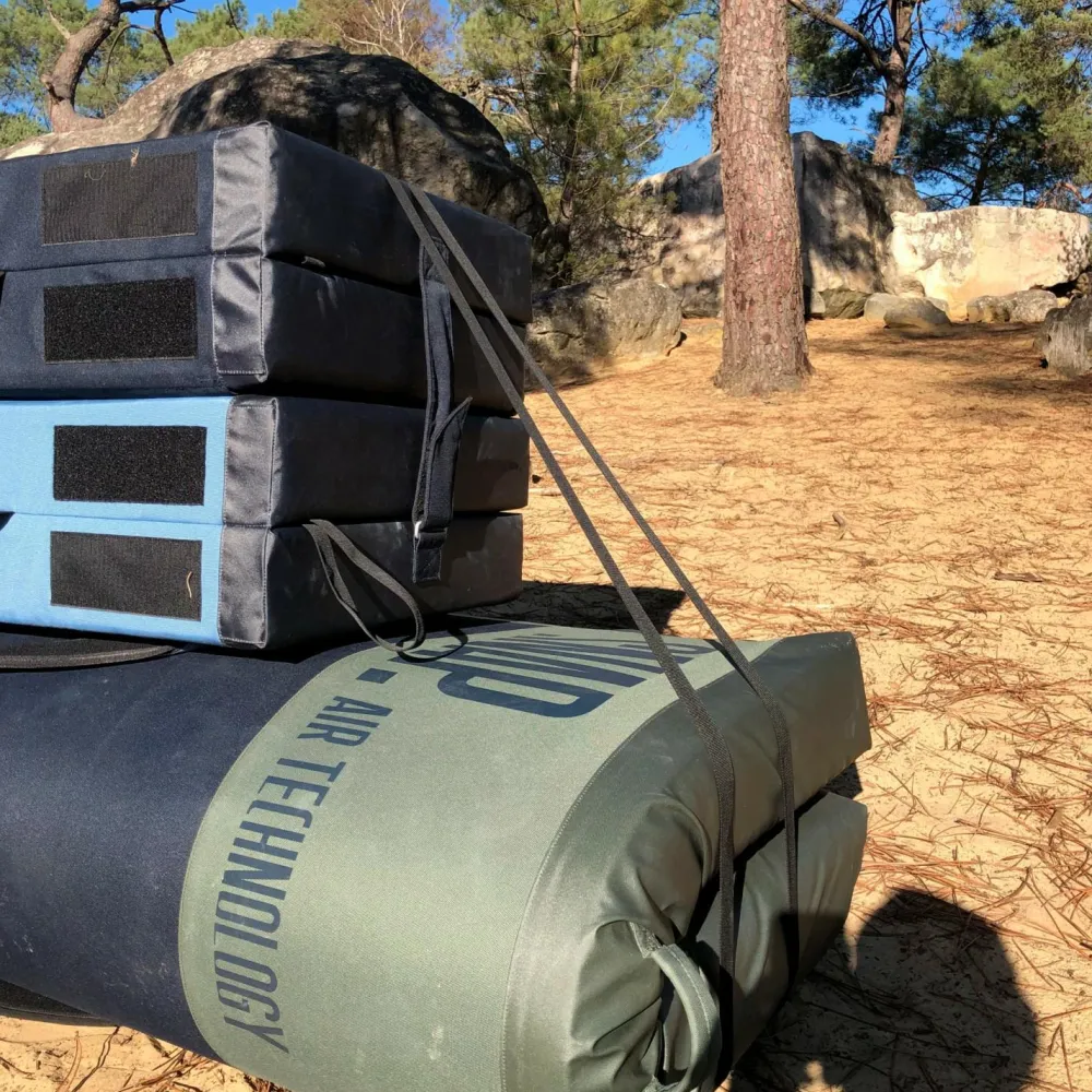 Das Pad Bundle von Snap dient dazu, zwei Crashpads auf einmal zu transportieren. Dank robuster Schnallen aus Metall ist Langlebigkeit und eine einfache Bedienung garantiert.