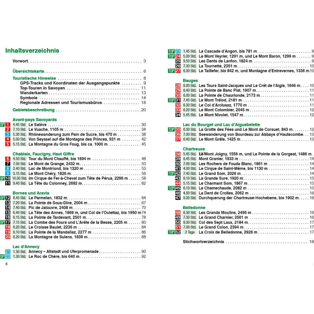 Die Wanderungen führen in die Gebirgsmassive der französischen Voralpen Chablais, Giffre, Bornes-Aravis, Bauges und Chartreuse sowie in die zu den Zentralalpen zählenden Belledonne. Drei olympische Städte – Chamonix, Grenoble, Albertville – sind Pforten in das Wandergebiet. Es ist das France Profonde, das ländliche, bäuerliche Frankreich, das Frankreich der Hirten und Almen, das der Wanderer auf seinen Touren durchstreift. Wilde Bäche säumen die Wege, Schafe weiden auf den Blumenwiesen und die Ausblicke auf die umliegenden Grate, Gipfel und Seen machen das Idyll perfekt.