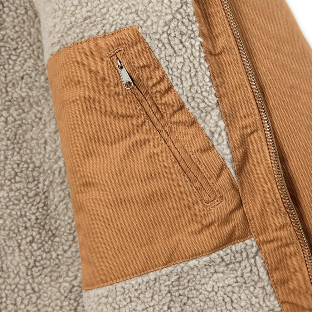 Mehrere Taschen bieten viel Platz für Kleinigkeiten. Dreifach gesteppte Nähte machen die Washed Duck Sherpa Lined Jacket besonders robust und strapazierfähig. Rippbündchen an den Ärmeln und das Logo auf der Brust runden die Jacke perfekt ab.