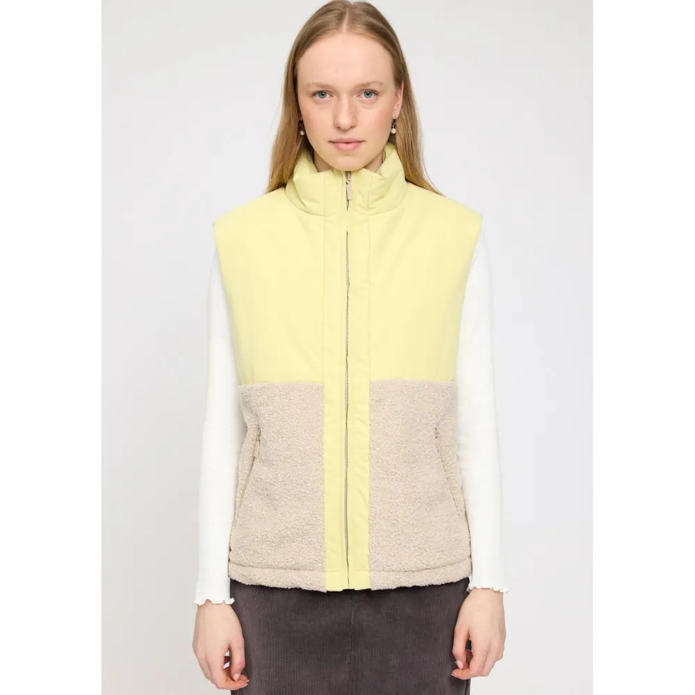 Mit der Women’s Fabric Blocking Vest von Mazine bist Du an kühlen Tagen zusätzlich geschützt. Die Fleeceweste ist atmungsaktiv, schnelltrocknend, isolierend und wasserabweisend. Der Stehkragen schmiegt sich angenehm an Deinen Hals an. Dank des durchgehenden Front-Reißverschlusses kann die Weste schnell und einfach geöffnet und geschlossen werden. Die beiden Seitentaschen eignen sich hervorragend, um Deine Hände zu wärmen oder Kleinigkeiten zu verstauen. Mit dem modernen und lässigen Look mit zwei unterschiedlichen Farben ist die Fleeceweste ein echtes Must-have.