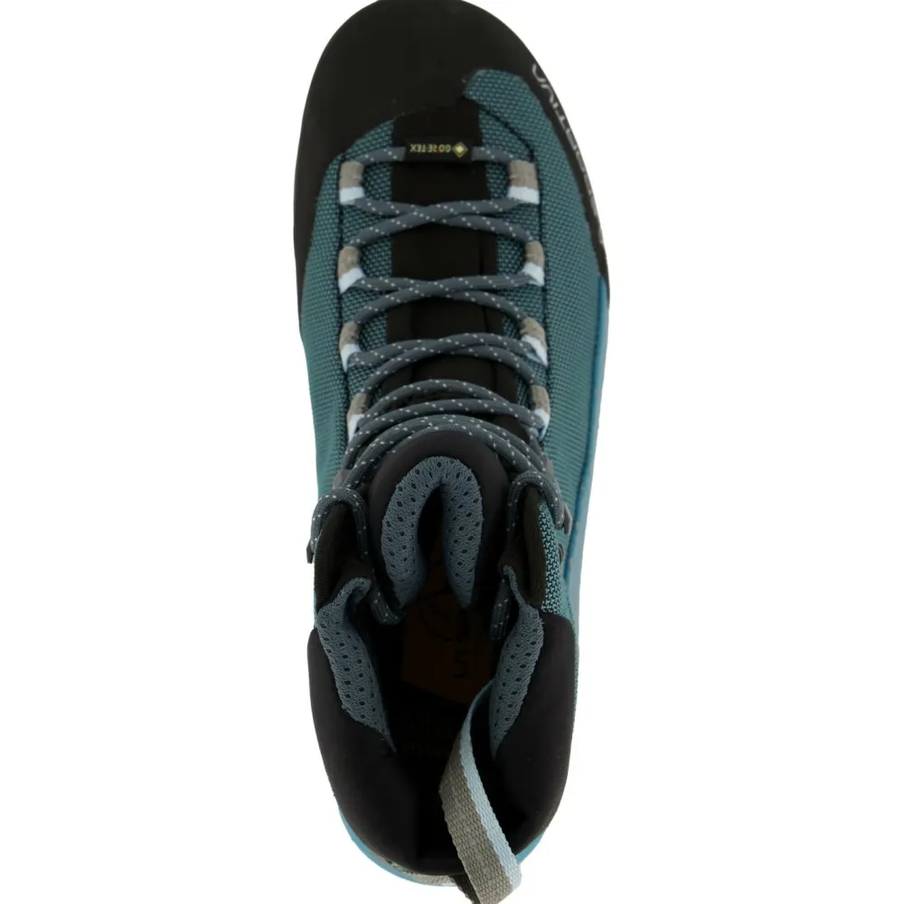 Ideal für Wandertouren und kleinere Trekkingtouren sind die Wanderschuhe Women’s Trango TRK GTX von La Sportiva! Dank GORE-TEX Membran sind die Schuhe wasserdicht und gleichzeitig atmungsaktiv. Das Obermaterial ist abriebfest und strapazierfähig. Dank Verstärkungen an Fersen und Zehen bist Du gut vor Geröll und Matsch geschützt. Gehkomfort, selbst mit schwerem Rucksack, liefern die dämpfende Zwischensohle und die Ortholite Einlegesohle. Die robuste Vibram Laufsohle sorgt für Grip, egal wo Du gerade unterwegs bist. Wetterschutz und Stabilität sind damit optimal kombiniert!