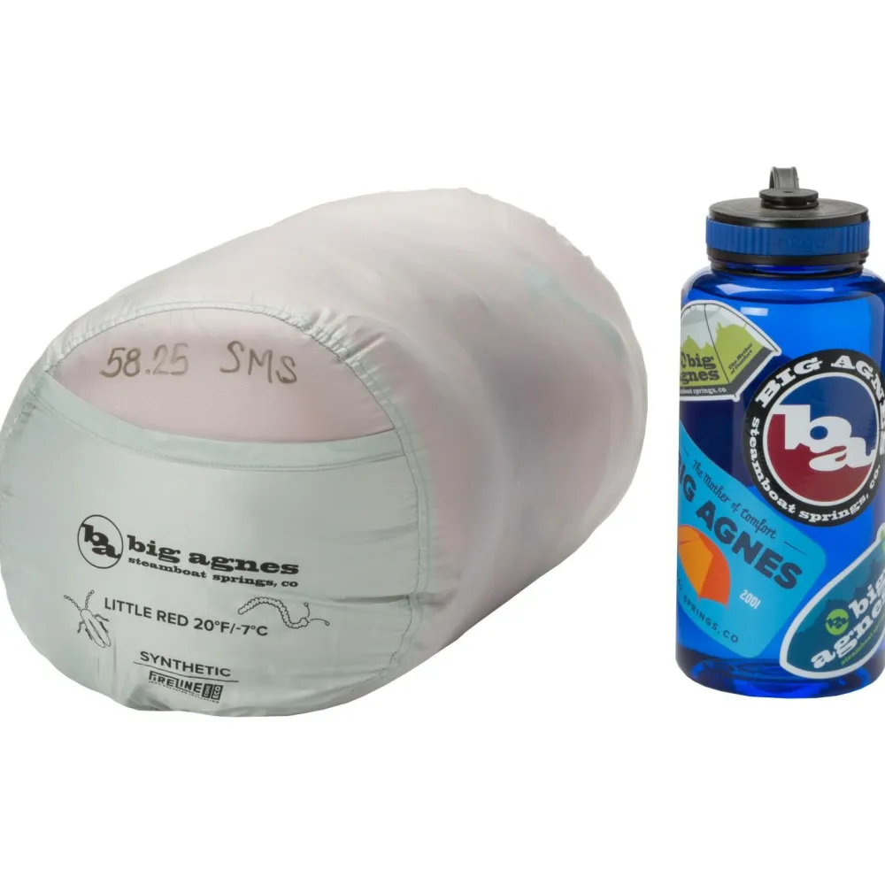 Der Little Red 20 Kunstfaserschlafsack von Big Agnes punktet mit geringem Gewicht und hochwertigen Materialien, die die Kleinen bei Nacht angenehm warm halten. Recycelte Fasern setzen ein klares Zeichen in Sachen Nachhaltigkeit und liegen gleichzeitig angenehm weich auf der Haut. Damit ein unangenehmes Herumrutschen nachts der Vergangenheit angehört, lässt sich der Schlafsack dank einer ausgeklügelten Konstruktion direkt mit einer Isomatte verbinden. Hierfür sind spezielle Halterungen angebracht. Die Isomatte sollte hierfür ca. 51 Zentimeter breit sein.