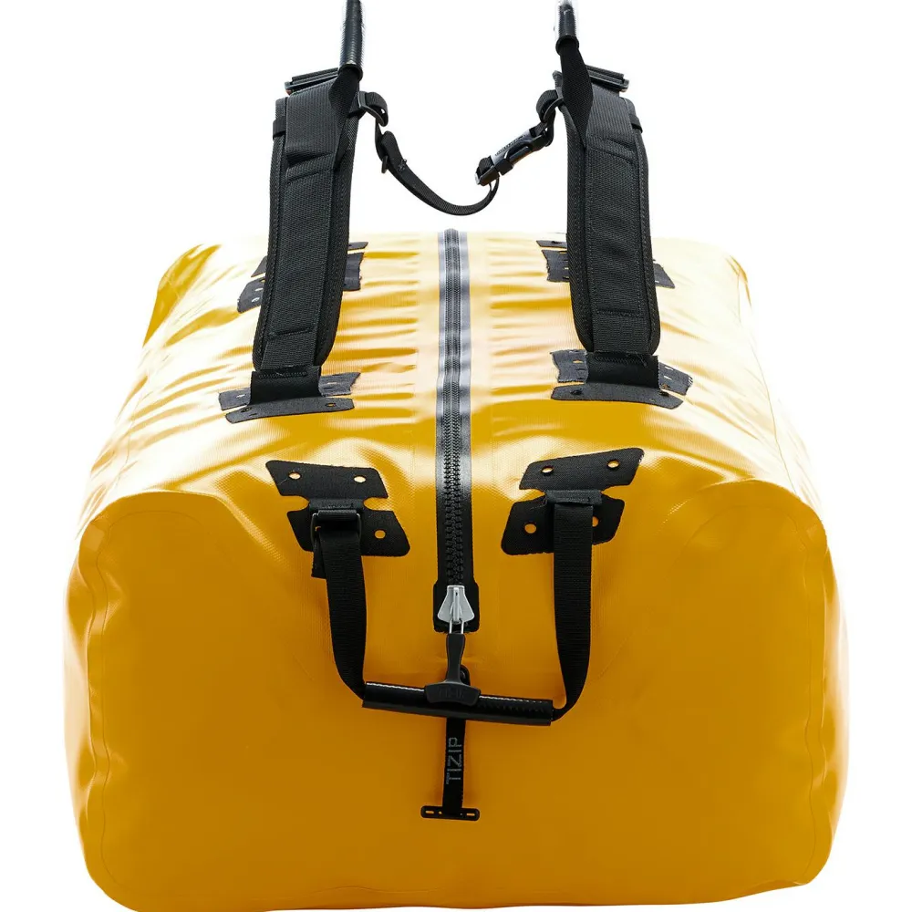 Ideal für lange Reisen und das Entdecken neuer Länder geeignet – die Big-Zip von Ortlieb. Die wirklich große Reisetasche ist mit Schulterträgern ausgestattet und hierdurch auch als Rucksack nutzbar. Mit 140 Litern Volumen bietet sie richtig viel Stauraum und kann aufgrund der Größe auch als praktischer Sitzsack zweckentfremdet werden – wenn der Zug oder Bus mal wieder Verspätung hat.