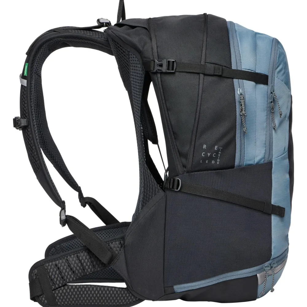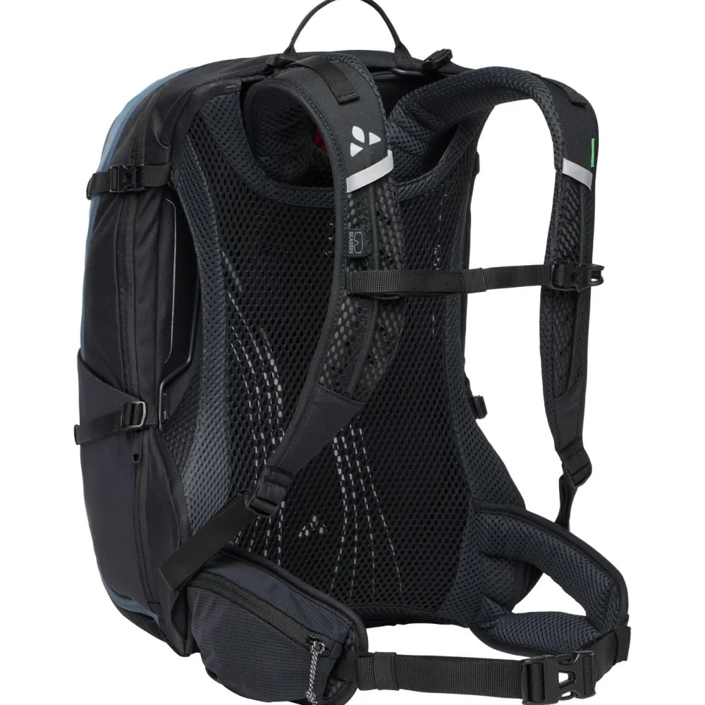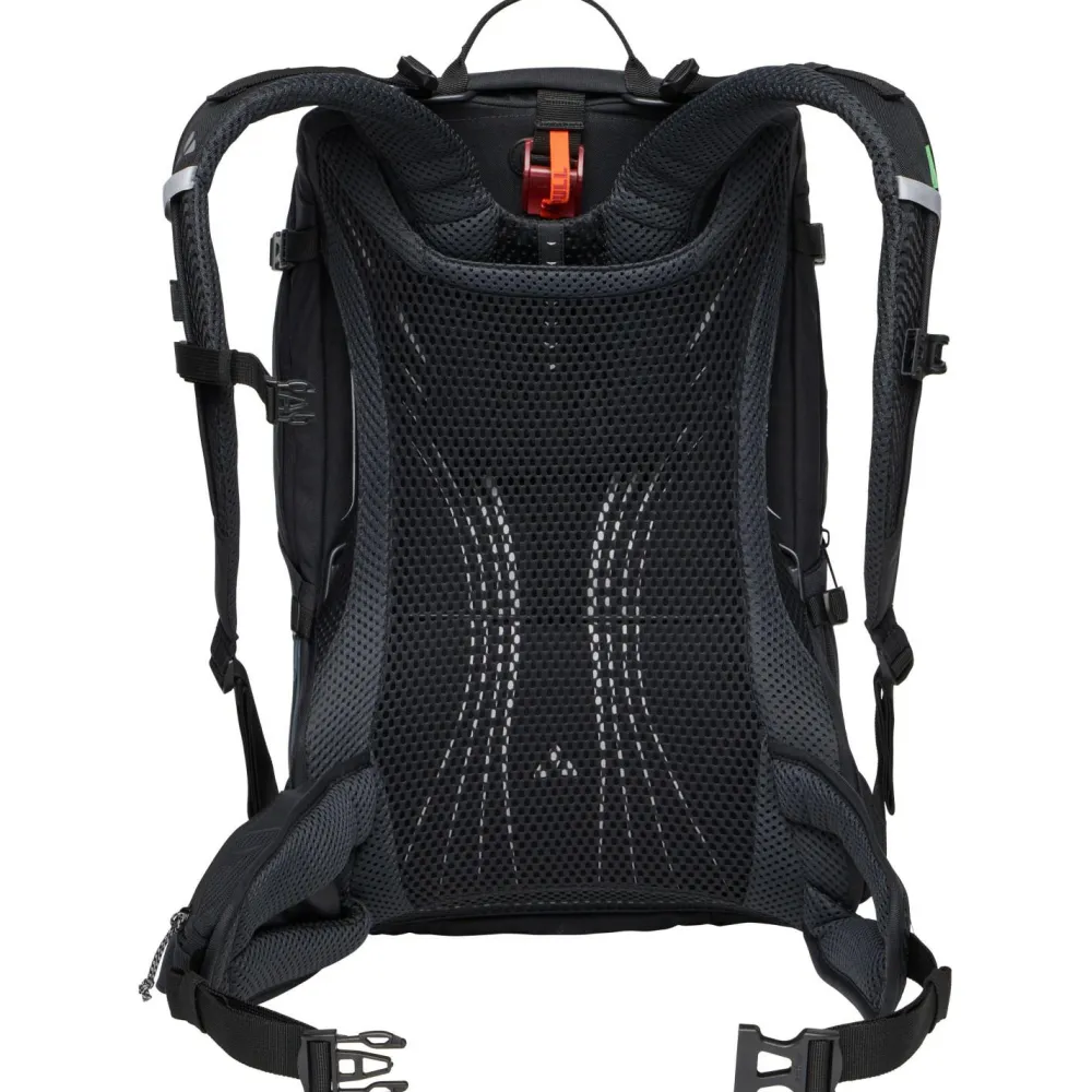 Als geräumiger Mountainbikerucksack ist der Bike Alpin 28+5 von Vaude der ideale Partner für Tagestouren, Mehrtagestouren und Alpencross! Sein Aeroflex 3D 2.0 Tragesystem ist in der Höhe stufenlos verstellbar und damit auch für längere Rücken geeignet. Die ErgoShape-Schultergurte verschaffen optimale Bewegungsfreiheit, während die gepolsterten Hüftgurte mit ihrem praktischen Reißverschluss-Täschchen für Entlastung sorgen. Hinzu kommt die permanente Rückenbelüftung von allen vier Seiten, die sowohl gegen Wärmestau als auch gegen Feuchtigkeitsbildung wirksam ist.