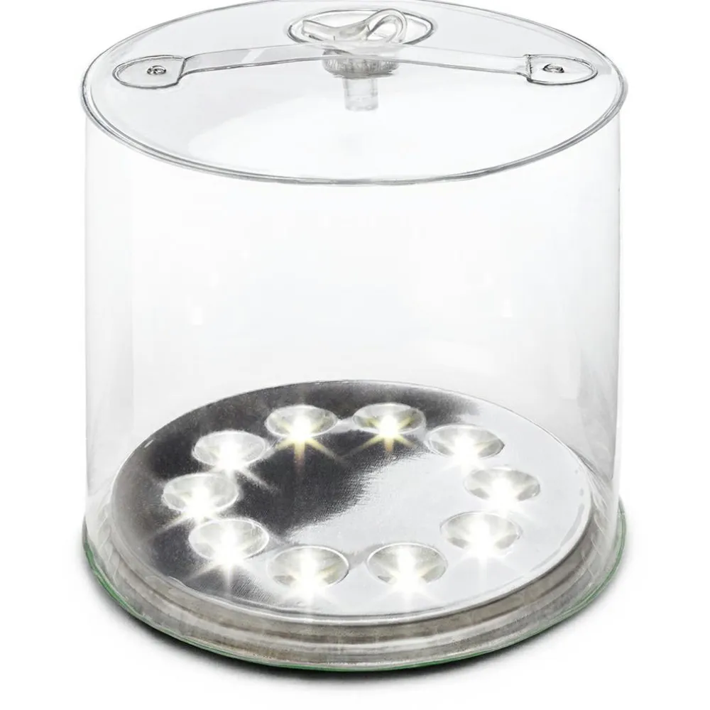 Die Luci Original Clear bietet zwei Lademöglichkeiten: über Solarenergie oder USB-C, wobei das Aufladen über USB-C etwa sechsmal schneller ist. Die Laterne ist mit 10 weißen LEDs ausgestattet, die durch eine klare Oberfläche leuchten und für eine gleichmäßige Ausleuchtung sorgen.
