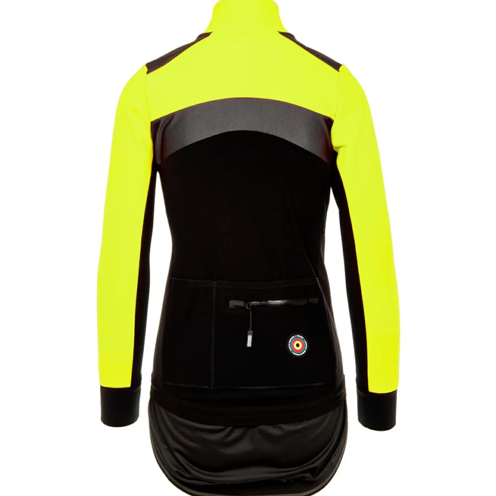Bequem, strapazierfähig und warm! Für ungemütliches und kaltes Wetter ist die Women’s Vesper Tempest Protect Winter Jacket Fluo von Bioracer eine gute Wahl! Ihr Material gibt zusammen mit den elastischen Ärmelbündchen und dem elastischen Saum eine gute Passform, Zudem ist die Jacke wasserabweisend und schützt Dich vor kaltem Gegenwind. Für eine extra Portion an Komfort und Wärme sorgt das weich angeraute Innenmaterial. Der Zwei-Wege-Reißverschluss macht die Jacke im Sitzen noch bequemer und kann zur Belüftung variabel geöffnet werden. Besonders toll sind die reflektierenden Einsätze, die bei schlechten Lichtverhältnissen für eine erhöhte Sichtbarkeit sorgen. Abgerundet wird das Ganze durch ein ausklappbares Rückenteil, das die Jacke verlängert, um noch besser vor Kälte zu schützen. Zwei Rückentaschen und eine Fronttasche bieten Platz für Smartphone, Gels, Riegel, Handschuhe und Co!