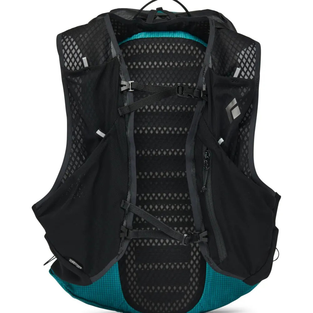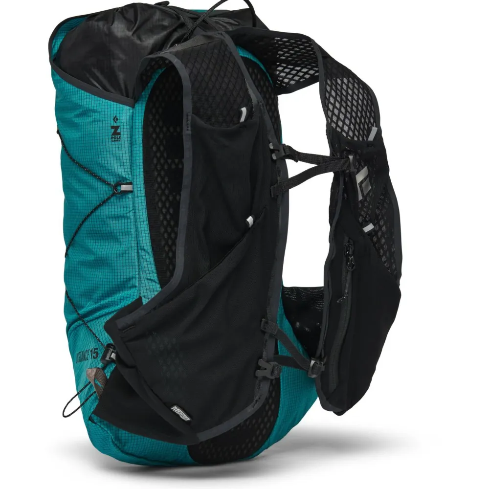 Der Women’s Distance 15 Trailrunningrucksack ist jederzeit schnell einsatzbereit und ist mit Z-Pole Tragesystem und integrierten Z-Pole Fächern ausgestattet. Das speziell entwickelte UHMWPE Ripstop Gewebe sorgt für hervorragende Stabilität bei minimalem Gewicht. Dazu stattet Black Diamond den Rucksack mit zwei Befestigungsmöglichkeiten für Eisgeräte oder Eispickel aus und bietet in zwei Fächern Platz für Trinkblasen.