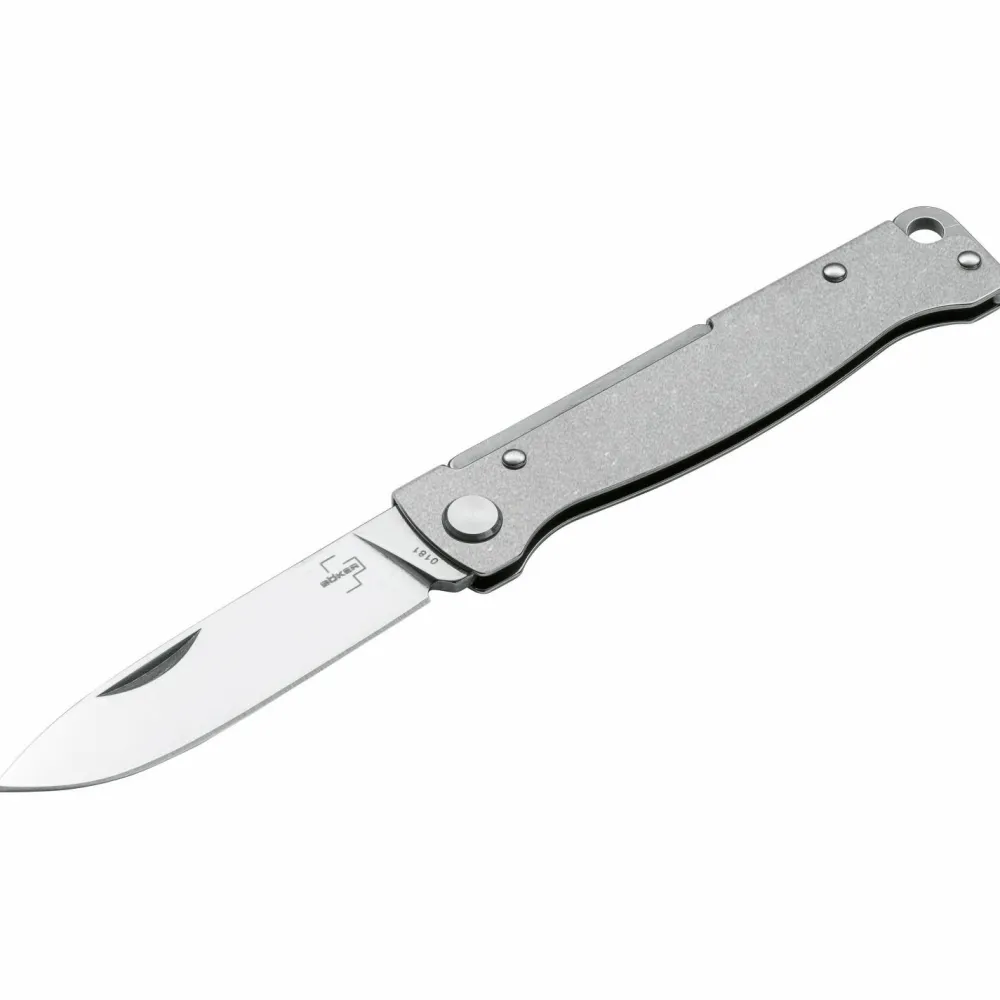 Das Böker Plus Atlas ist ein Slipjoint-Taschenmesser, das in seiner Vintage-Version mit einem Griffkörper aus Messing ausgestattet ist. Die minimalistische Konstruktion ist überaus robust und macht das handliche Messer zum perfekten Begleiter in allen Lebenslagen. Die satinierte Droppoint-Klinge aus 12C27 Sandvik-Stahl wird per Nagelhau geöffnet und bewältigt alle anfallenden Schneidaufgaben. Die Fangriemenöse und der Clip machen das Messer komplett.