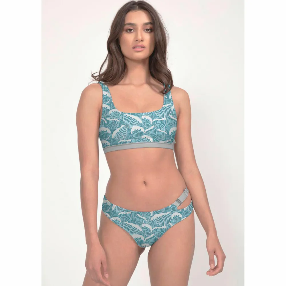 Von der Auswahl der Materialien bis zum Ritt auf der Welle wird bei boochen auf Nachhaltigkeit geachtet, das Bikini-Top besteht komplett aus recyceltem Polyester.