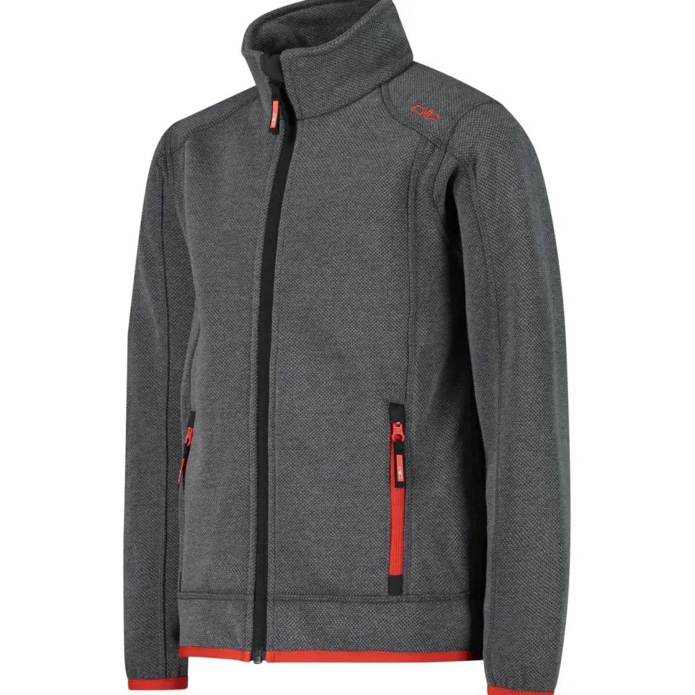 Die Boy’s Jacket Jacquard Knitted Fleecejacke von CMP ist aus 280 g/m² starkem Knit Tech Fleece gefertigt. Das dicke Gewebe sorgt bei kaltem Wetter für angenehme Wärme und ist gleichzeitig atmungsaktiv. Feuchtigkeit vom Körper transportiert die Fleecejacke zügig nach außen und nach dem Waschen ist sie in kürzester Zeit wieder komplett trocken. Die CMP Fleecejacke aus Polyester ist ergonomisch geschnitten und verfügt über komfortable Flachnähte und einen durchgehenden Frontreißverschluss mit Kinnschutz. Zusätzlich ergänzen zwei praktische Taschen mit Reißverschluss die warme Fleecejacke.
